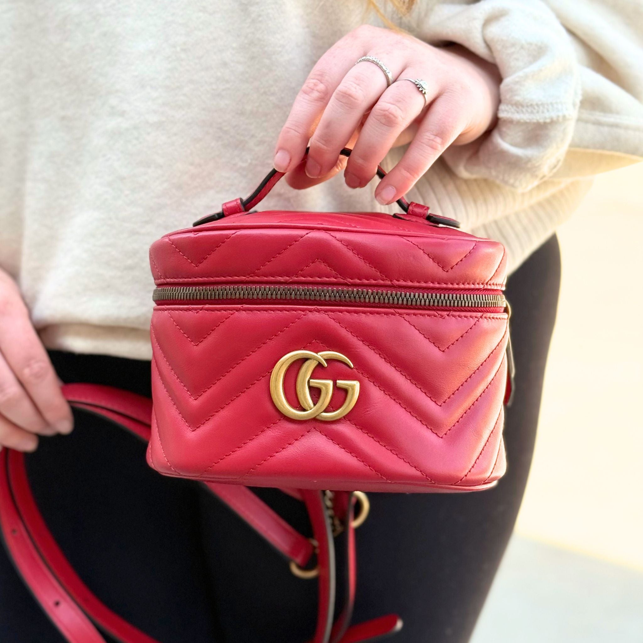 Gucci GG Marmont Mini Vanity Red Leather Backpack