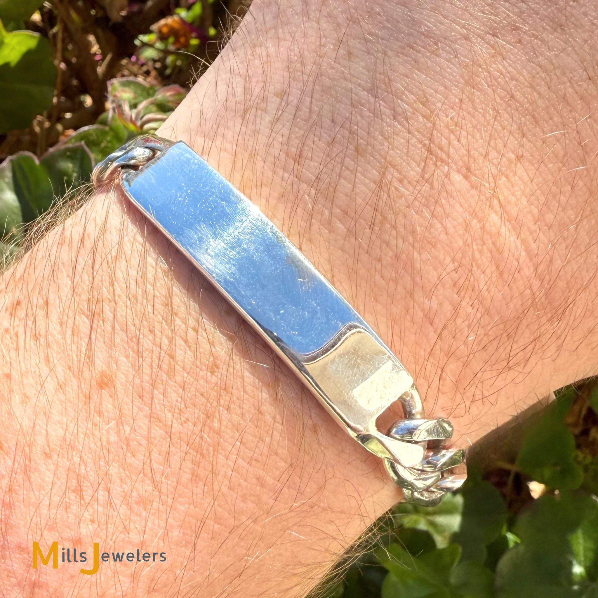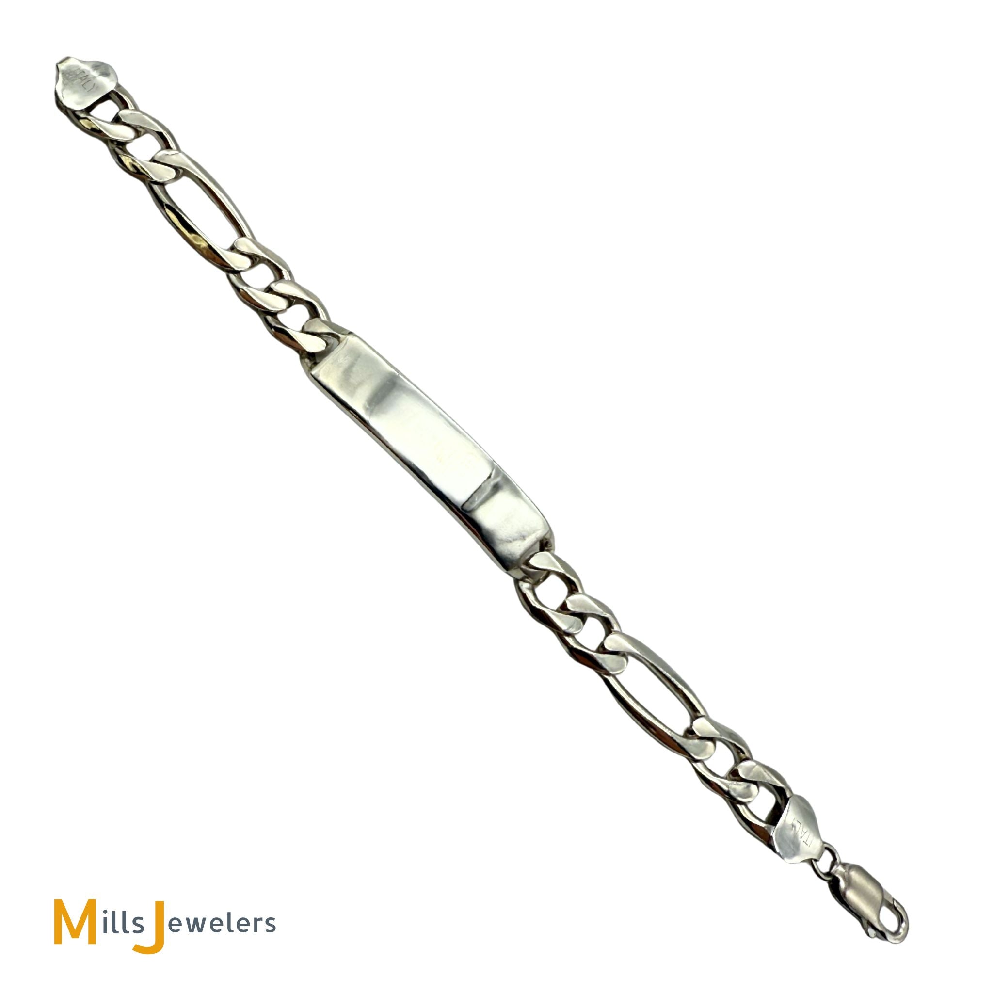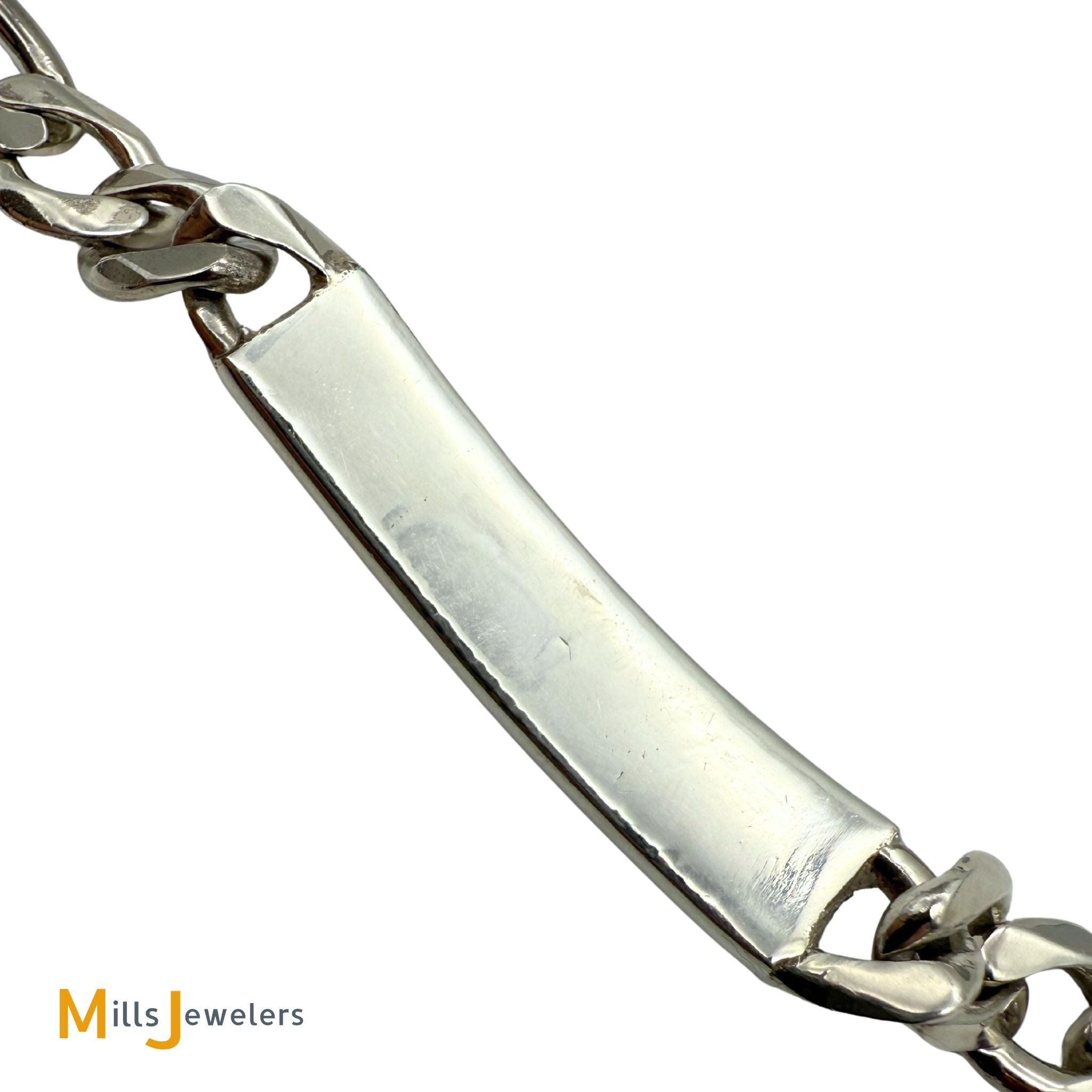 Sterling Silver 925 Figaro Chain Blank ID Bracelet Size 7"