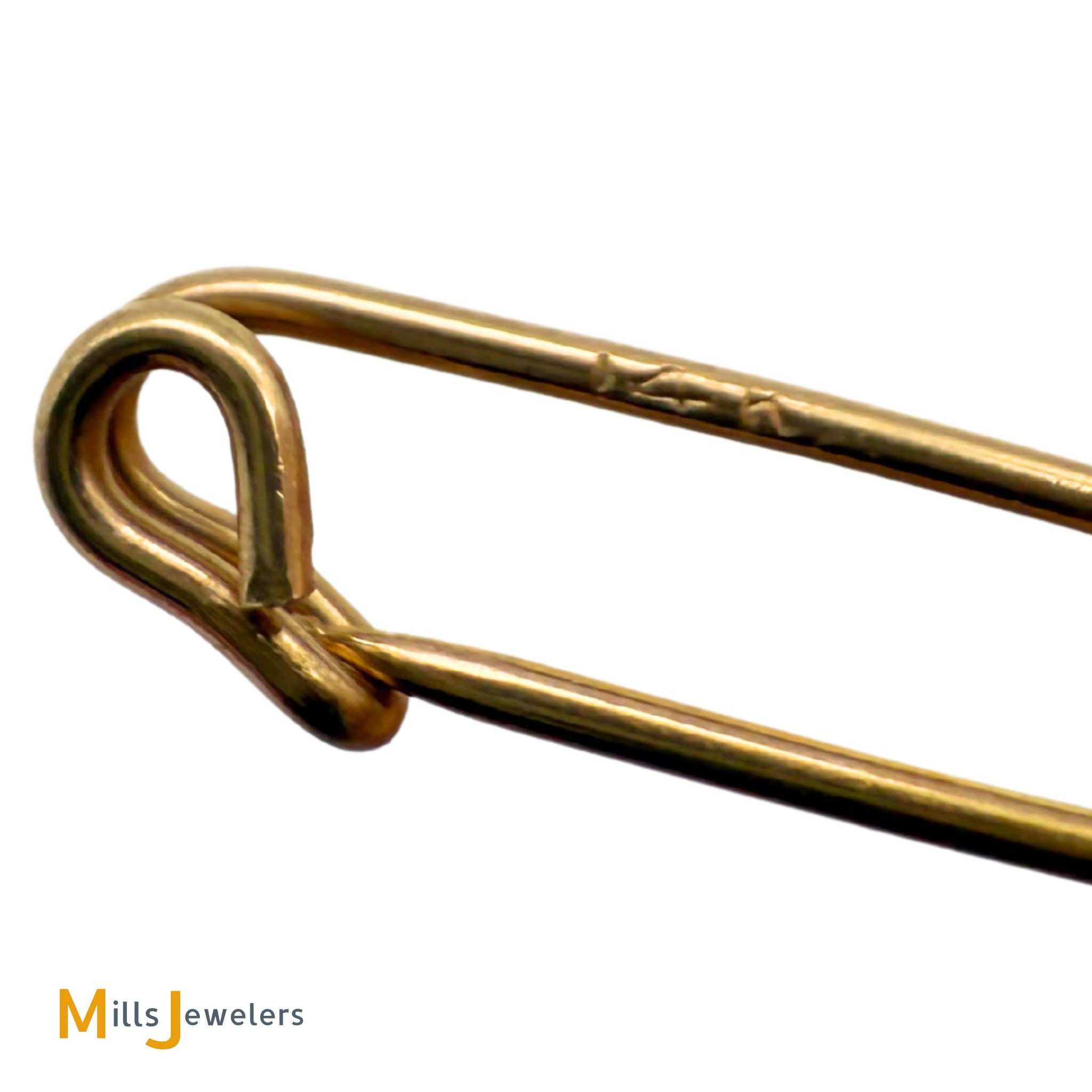 • Hallmarks: 14K (located on safety pin)