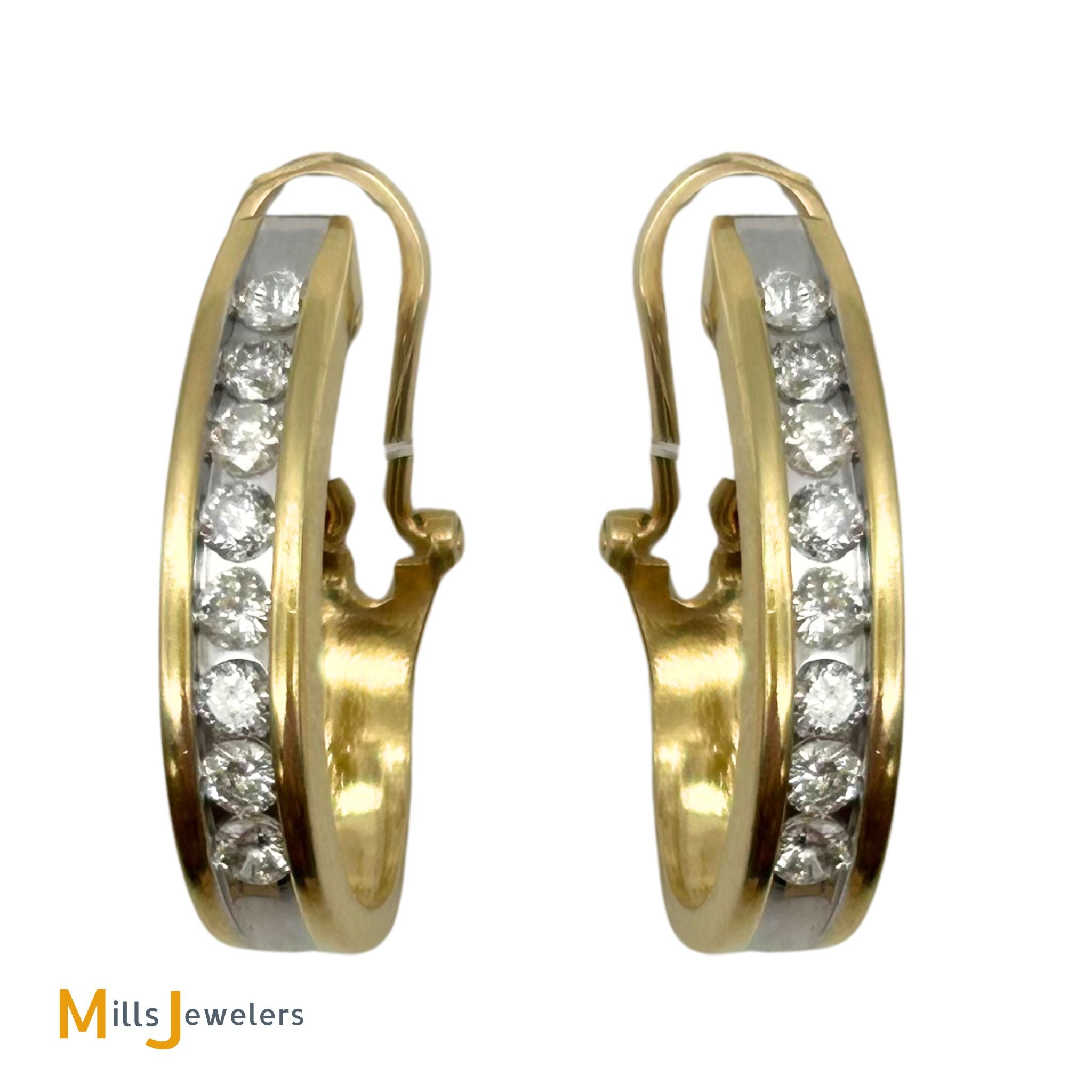 14K Two-Tone Yellow White Gold 1.76ctw Diamond Channel Set Hoop Earrings