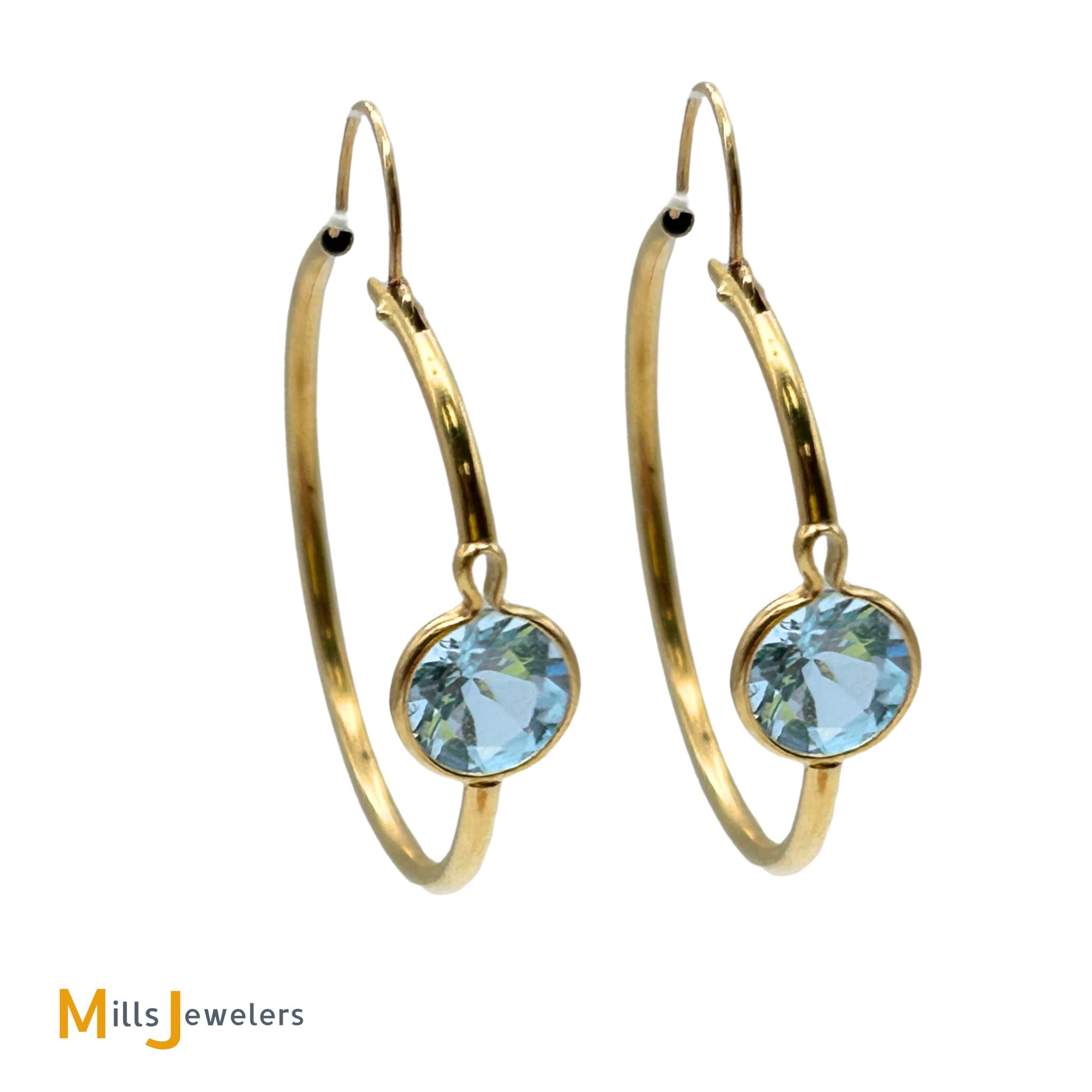 14K Yellow Gold Round Cut 1.84ctw Blue Topaz Hoop Earrings