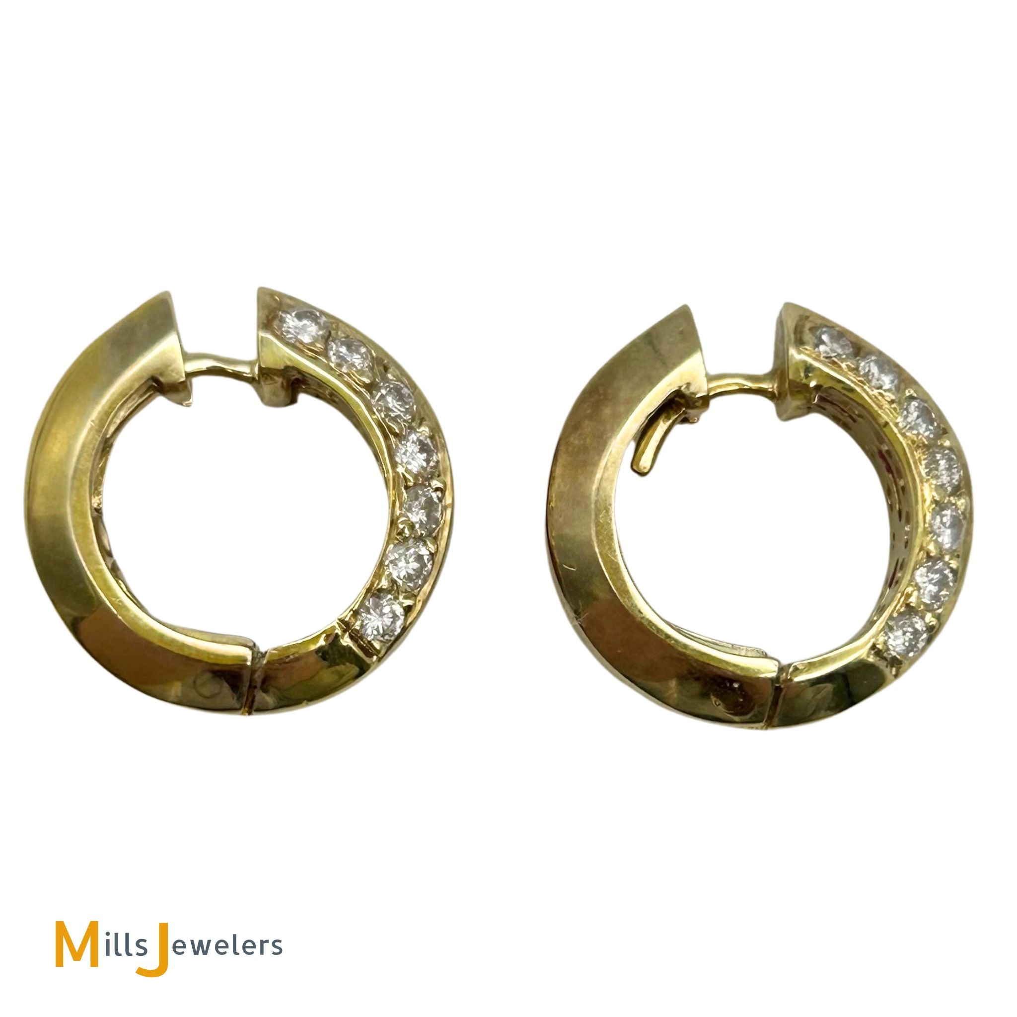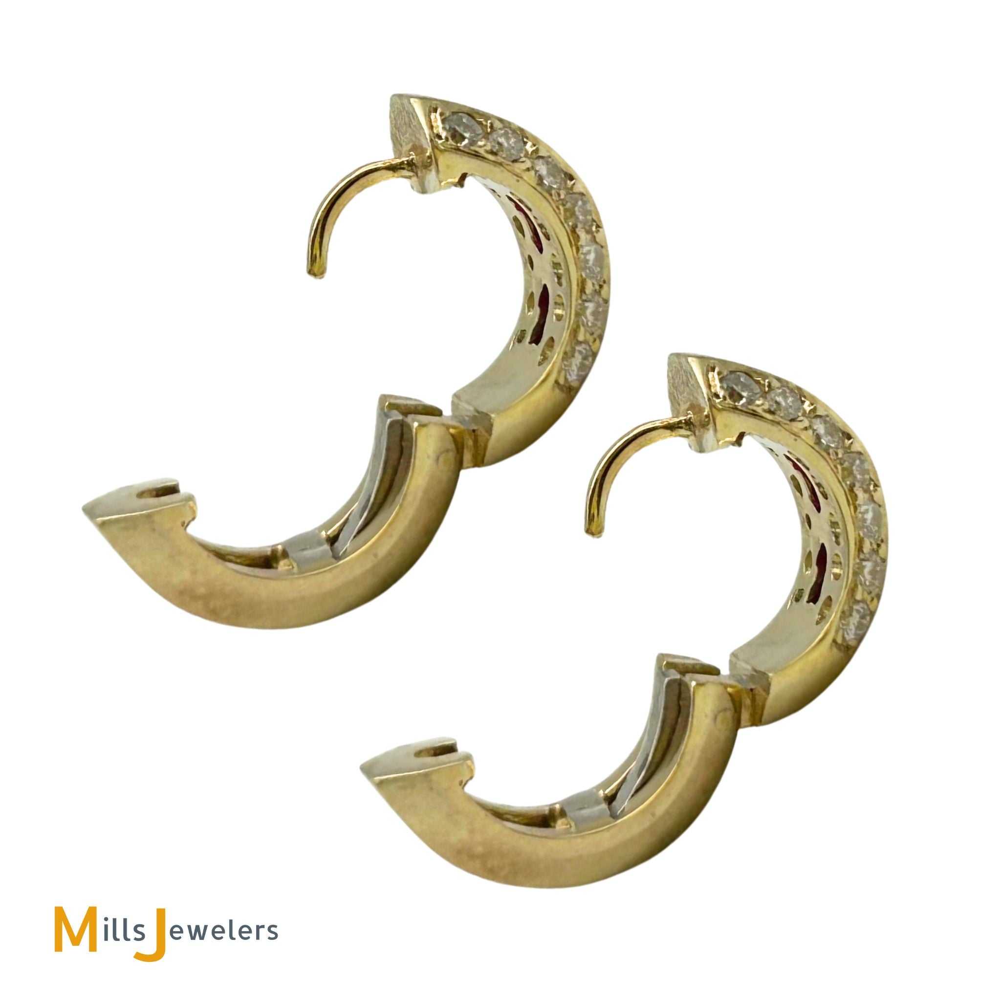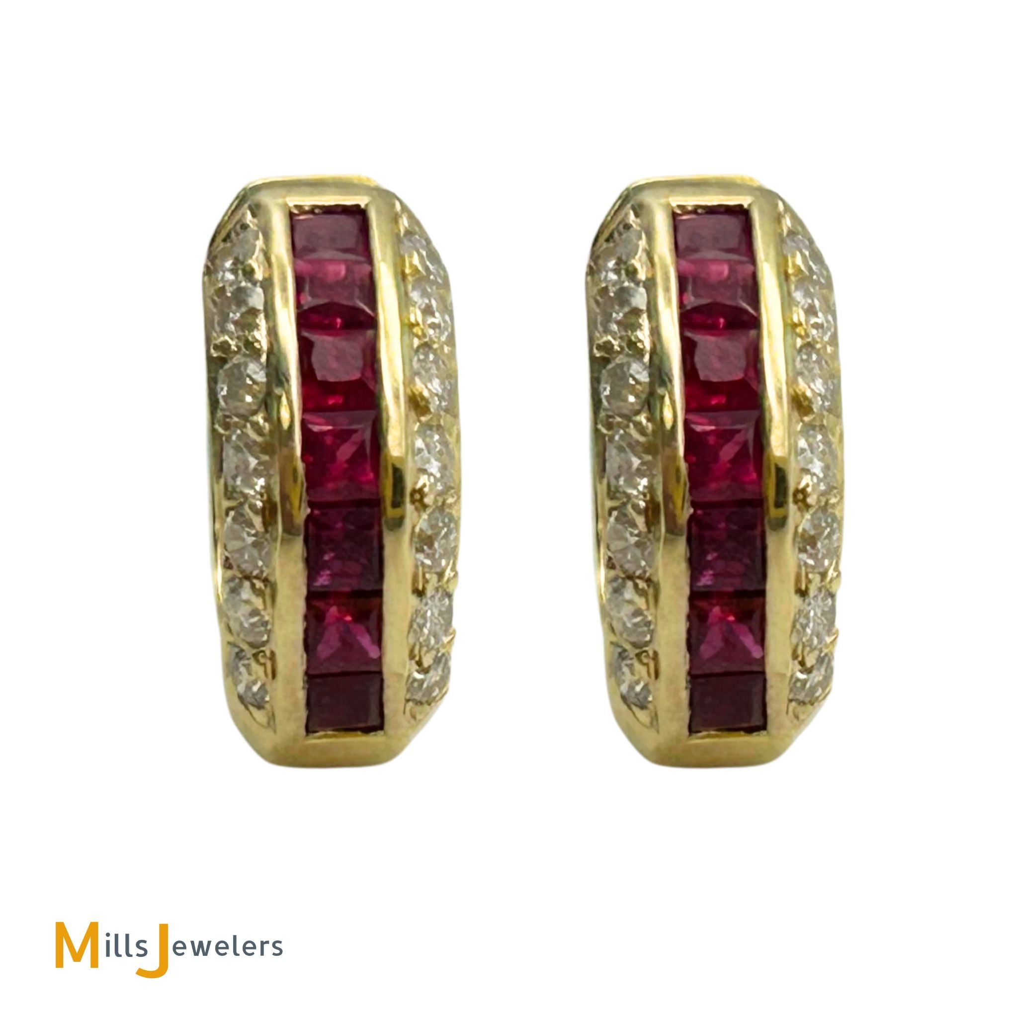 18K Yellow Gold 0.70ctw Diamond and Princess-Cut Ruby Huggie Earrings