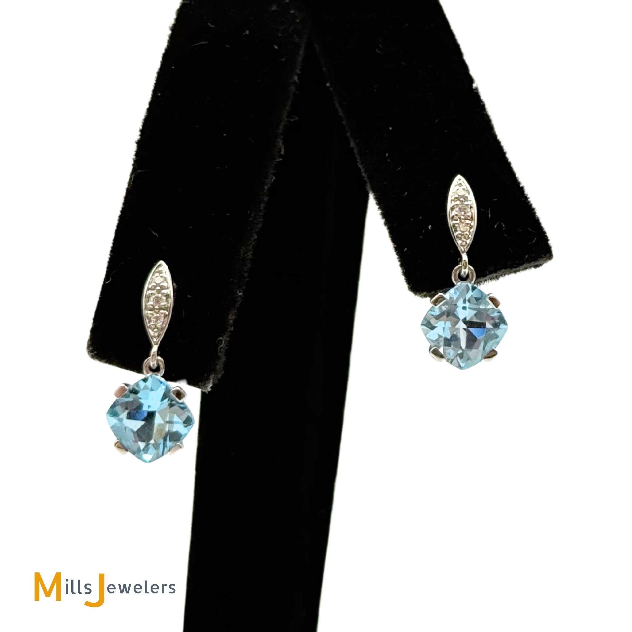 14K White Gold 1.3ctw Aquamarine and 0.04ctw Diamond Dangle Earrings