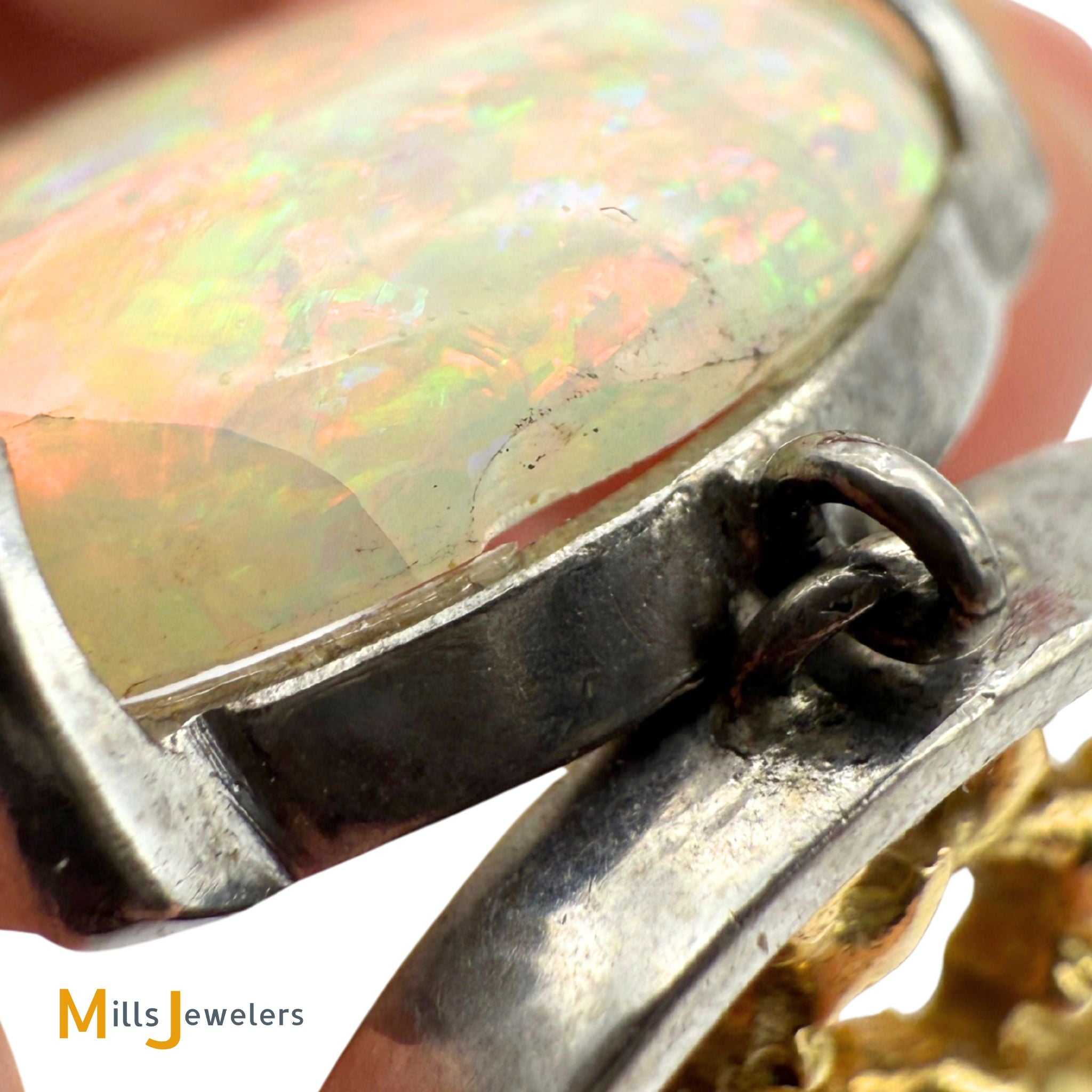 - Condition: Overall very good condition. Minor scratching on metal throughout. Opal is original and accounted for. Opal is crazed with a tiny chunk missing on the top of the back.