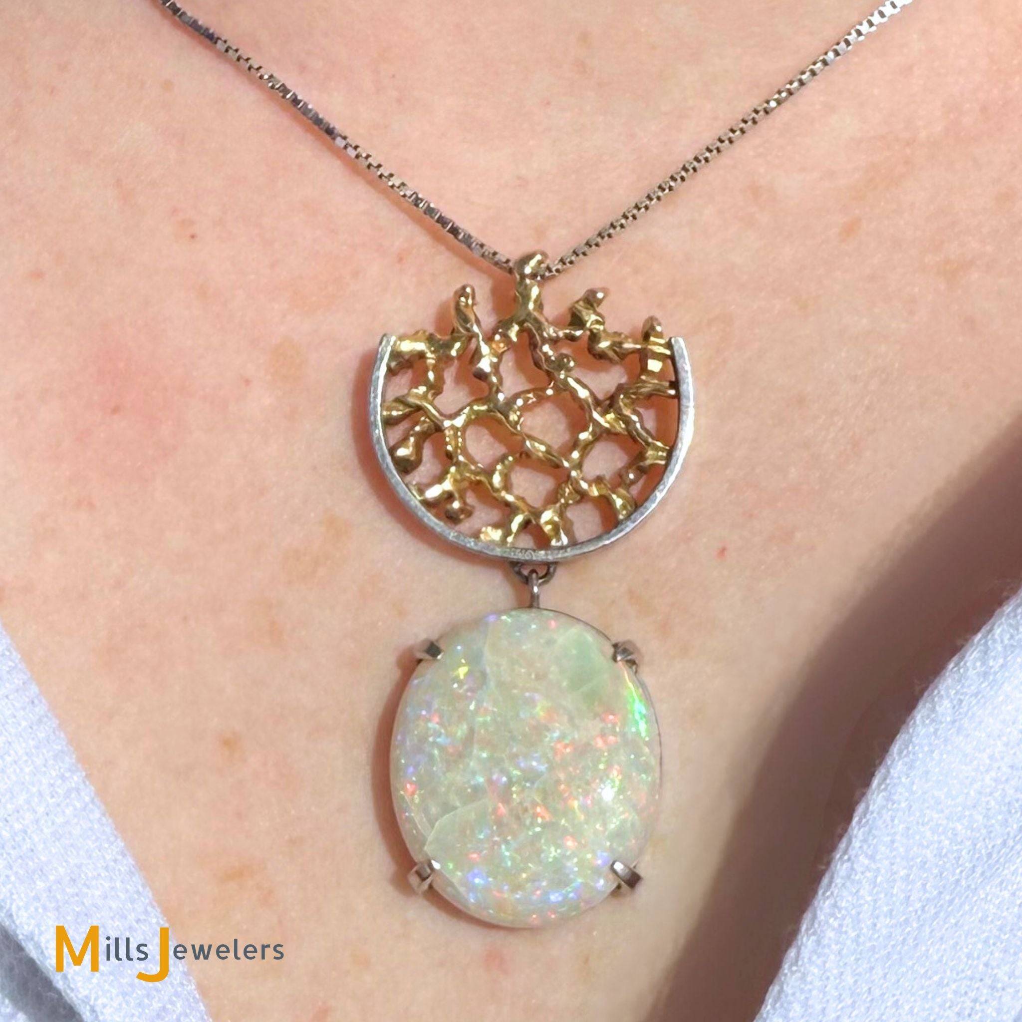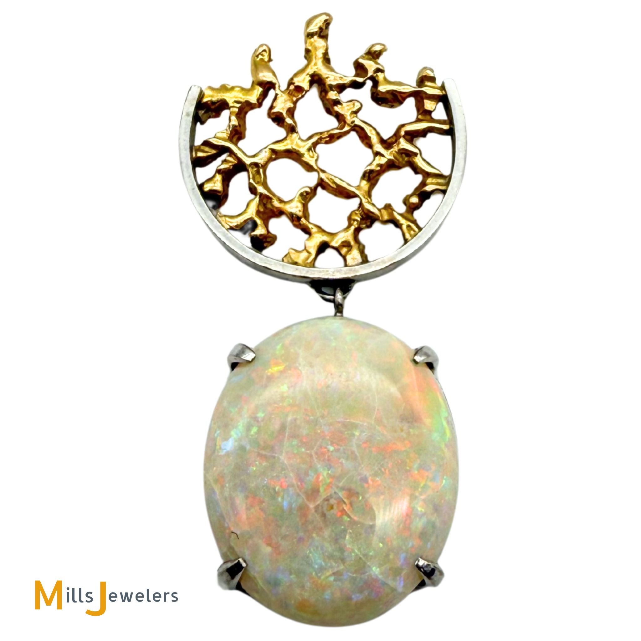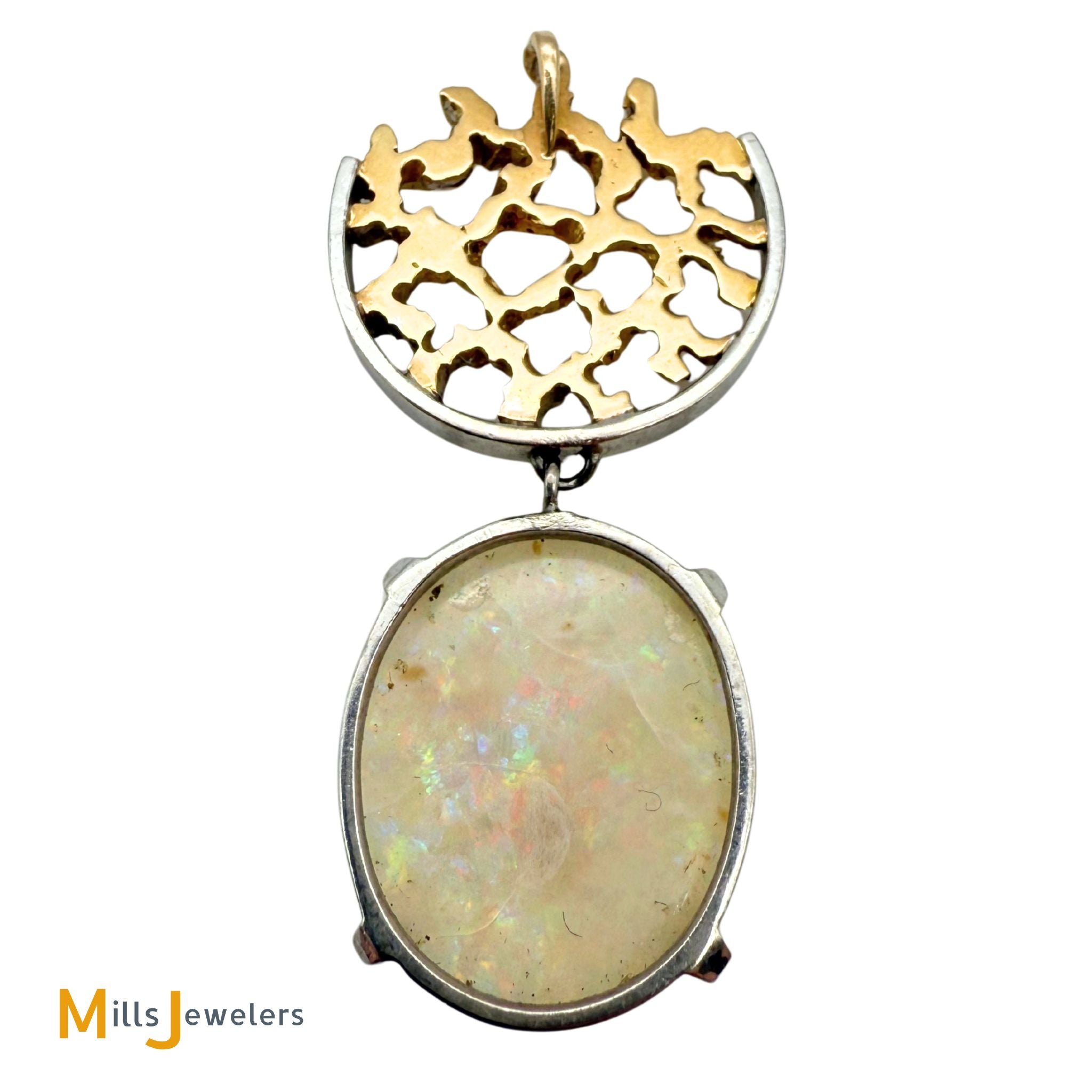 14K Two-tone Gold 10ct Australian Fire Opal Abstract Slide Dangle Pendant