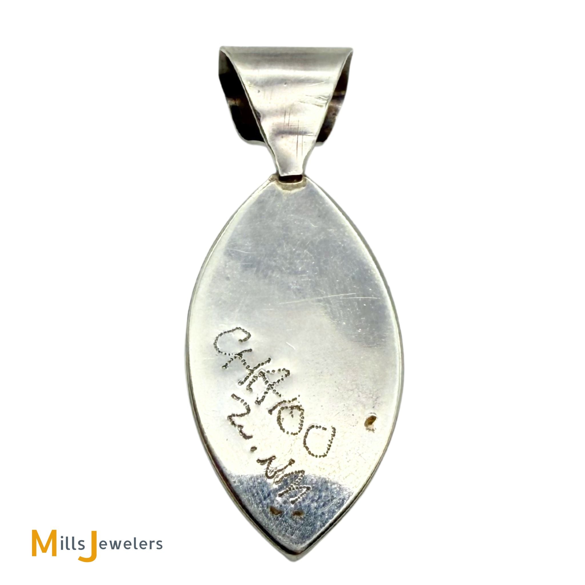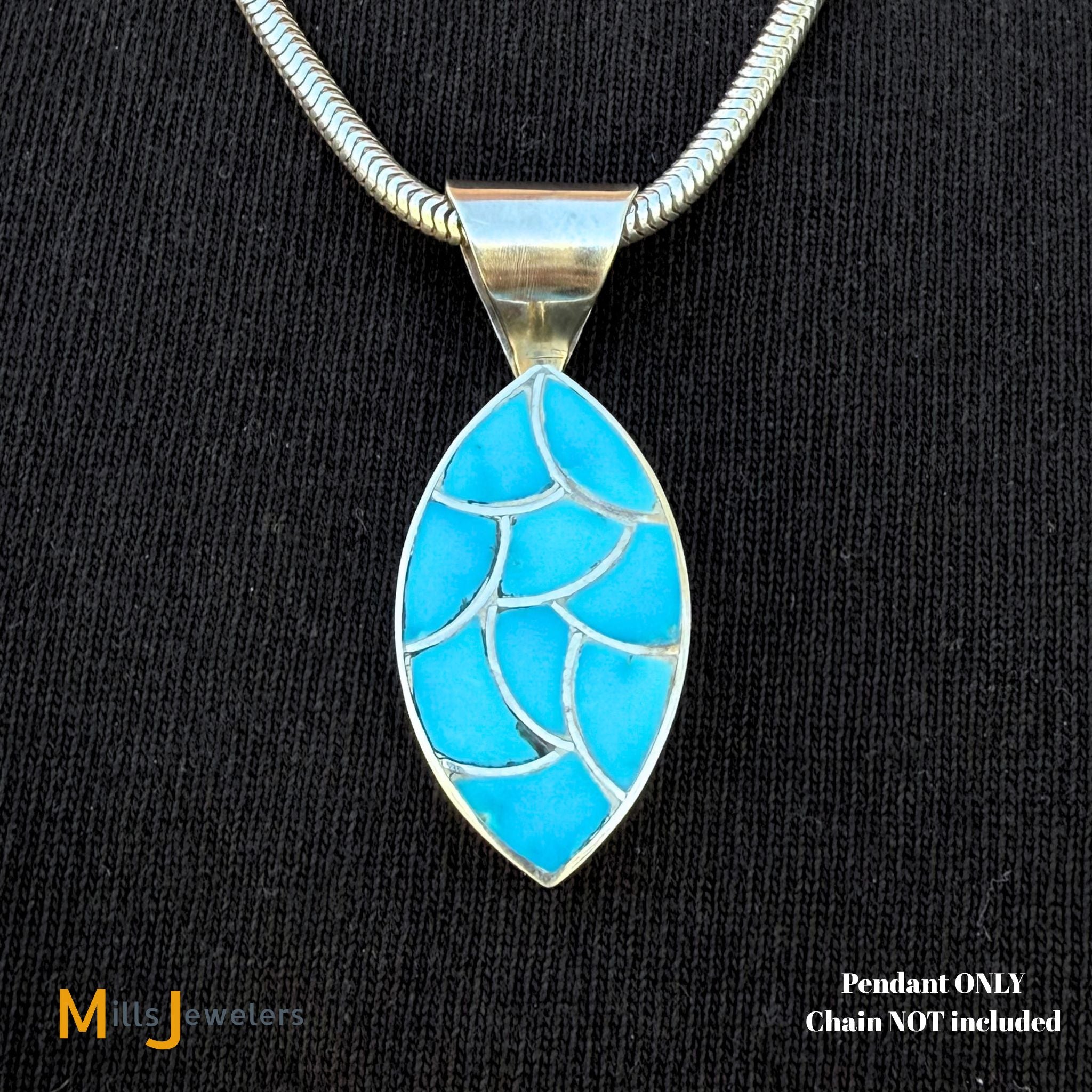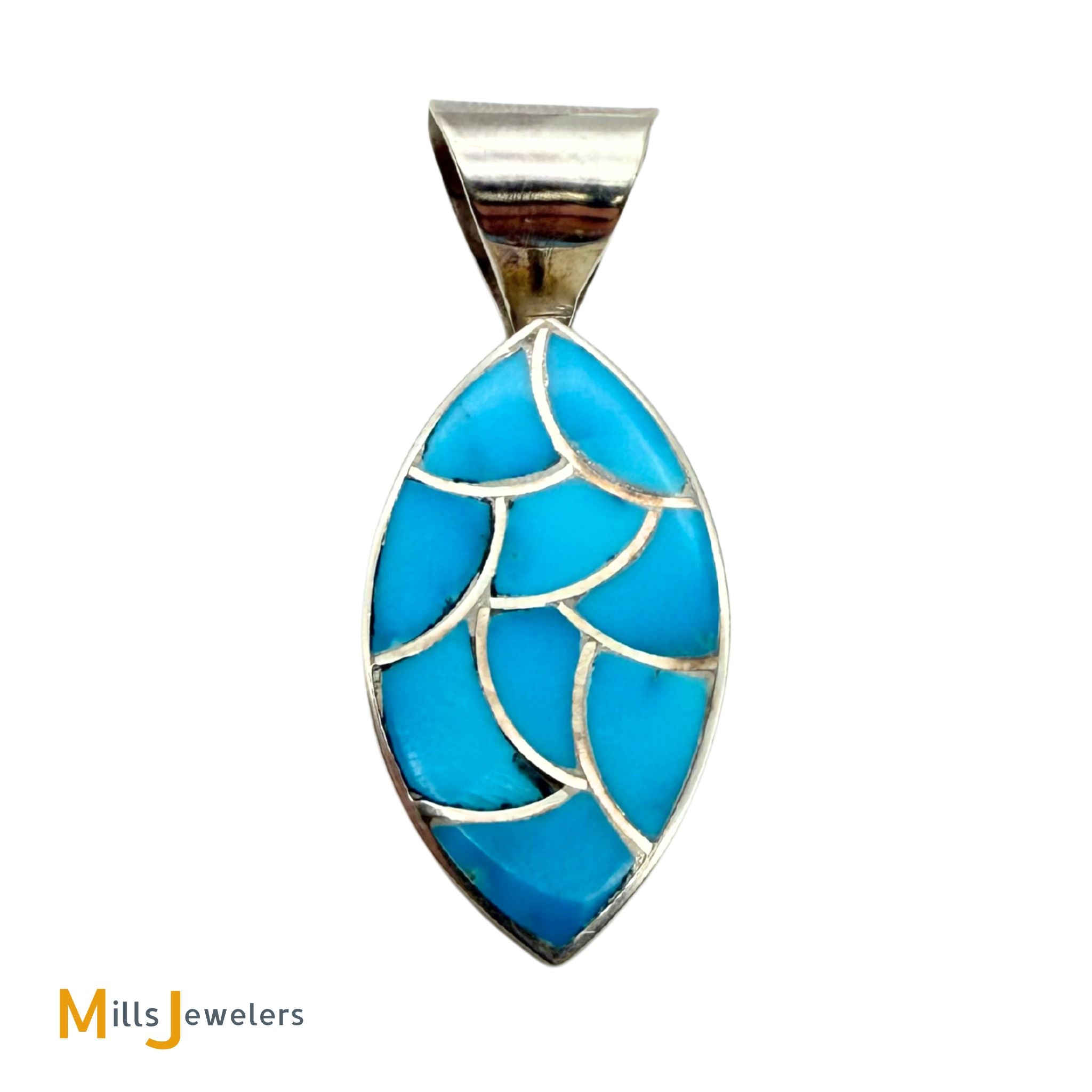 Carmichael Haloo Zuni Sterling Silver 925 Fish Scale Inlaid Turquoise Dangle Pendant