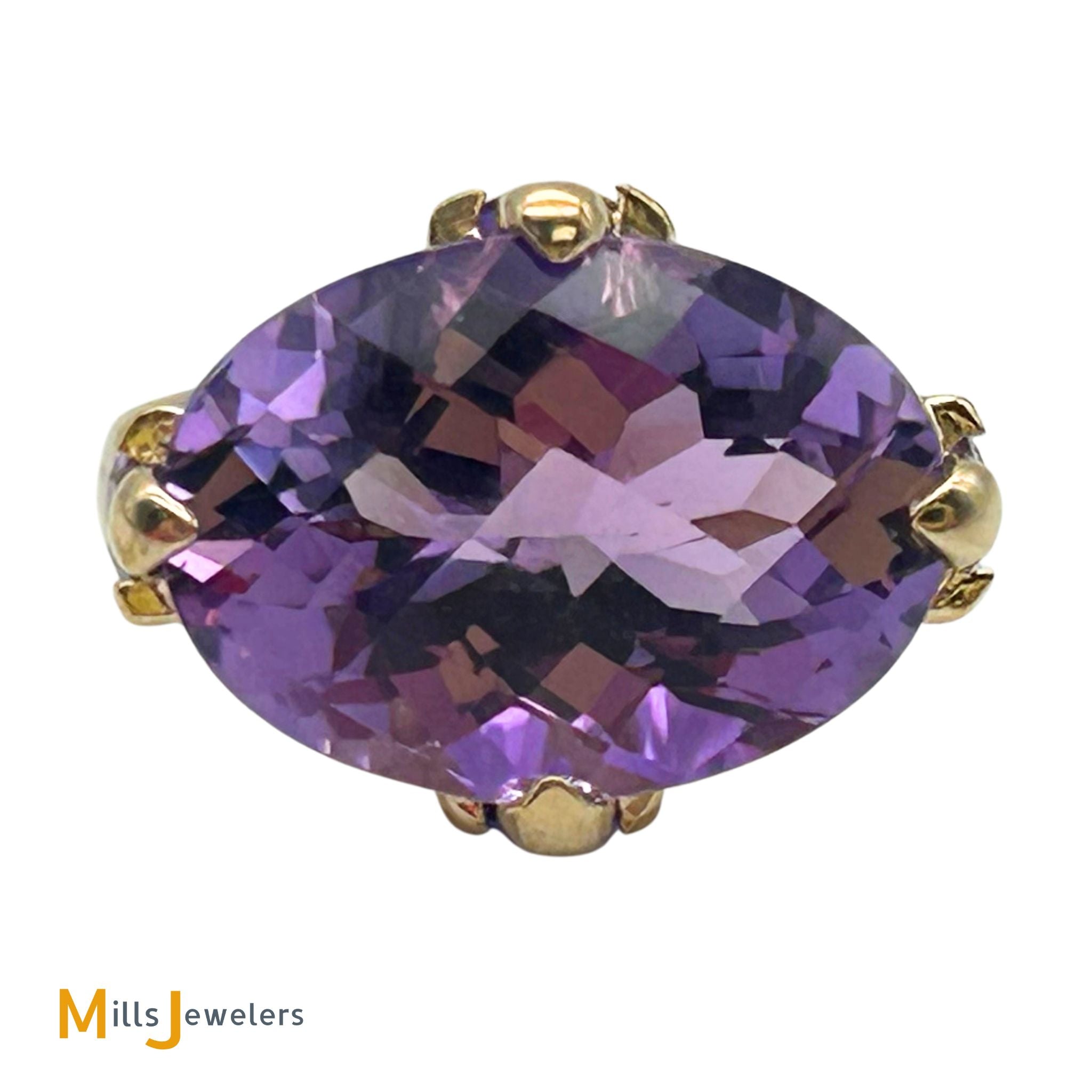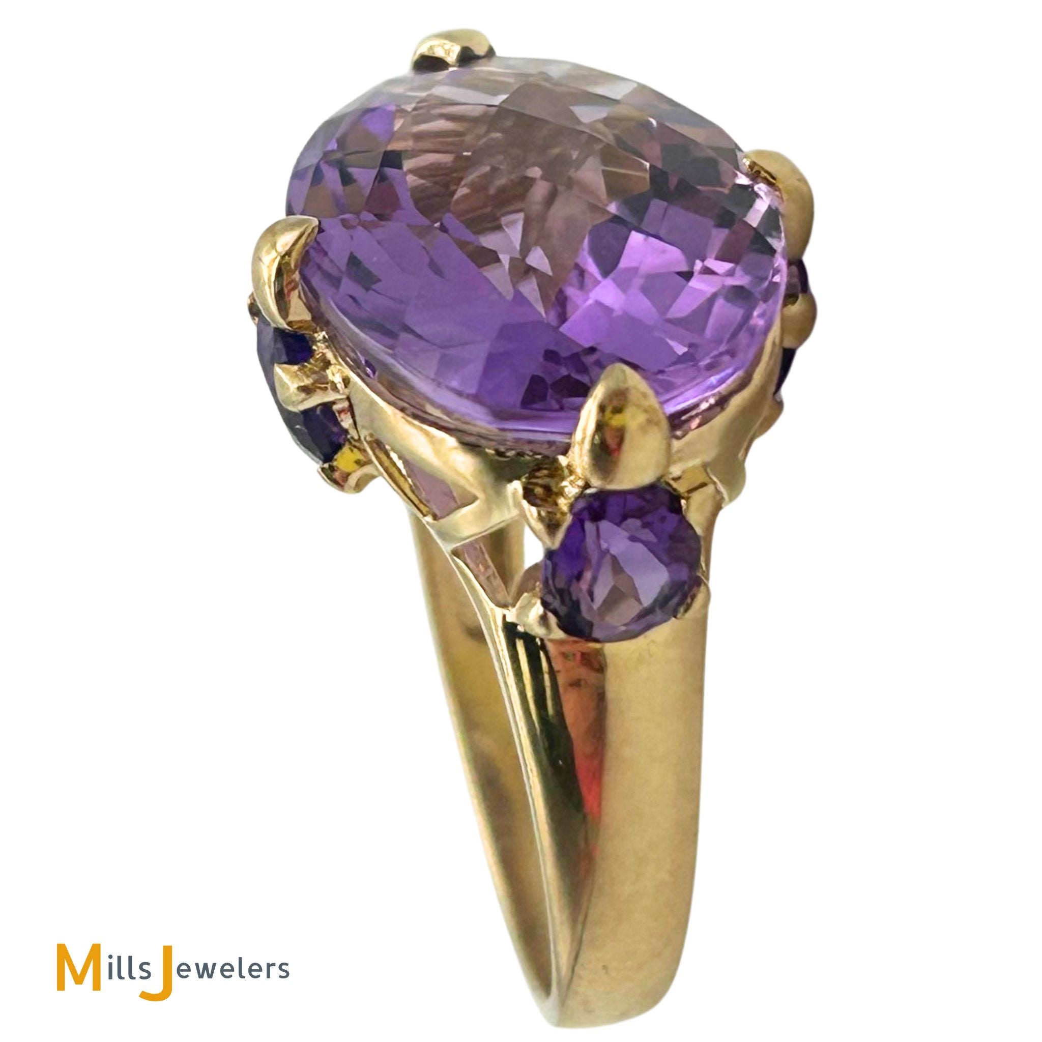 10K Yellow Gold Oval Briolette 11.80ctw Amethyst East West Cocktail Ring Size 7.25