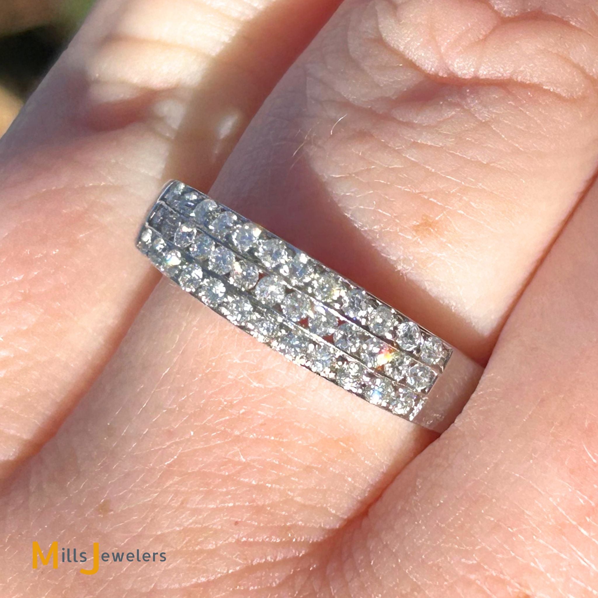 18K White Gold 0.37ctw Diamond 3 Row Band Ring Size 7.75