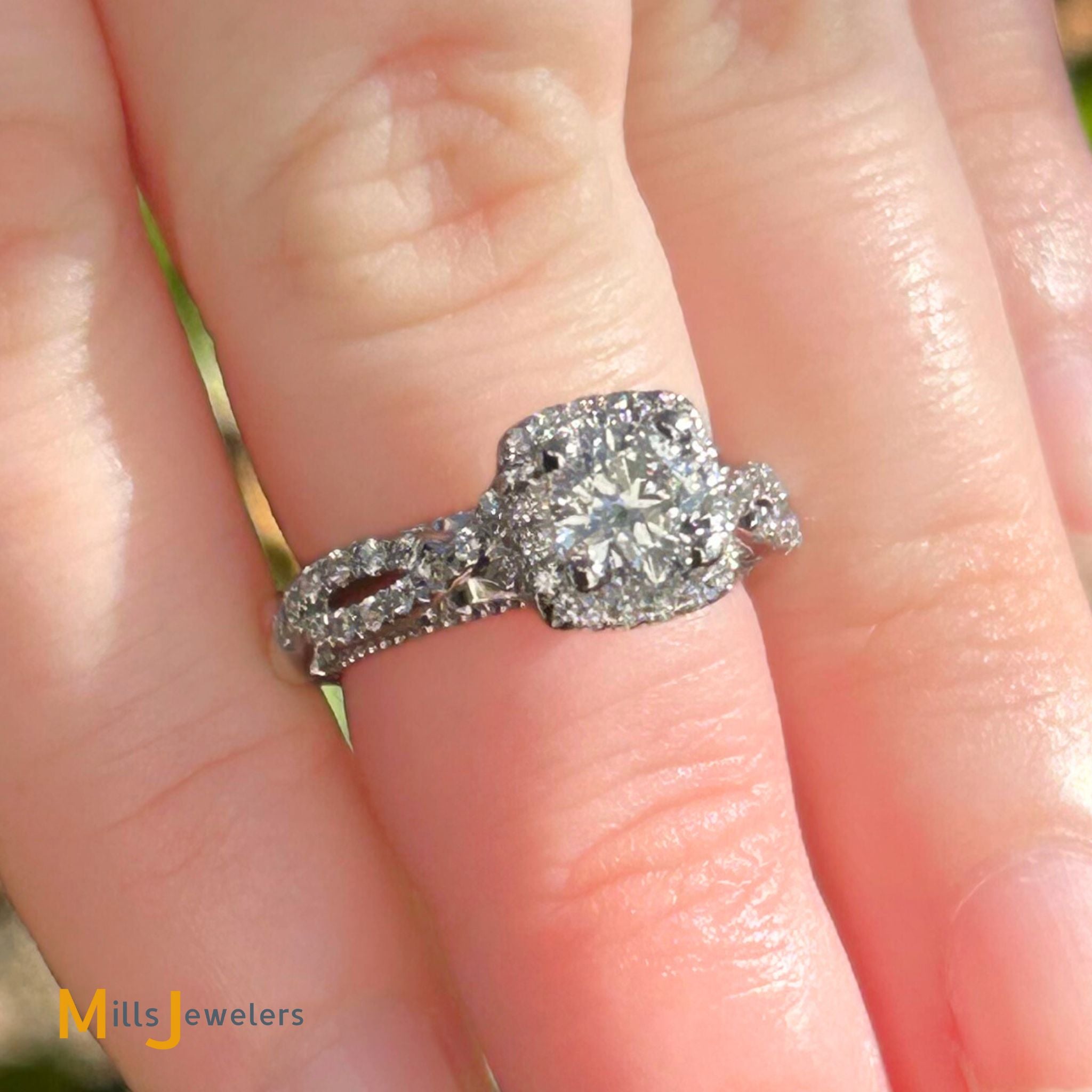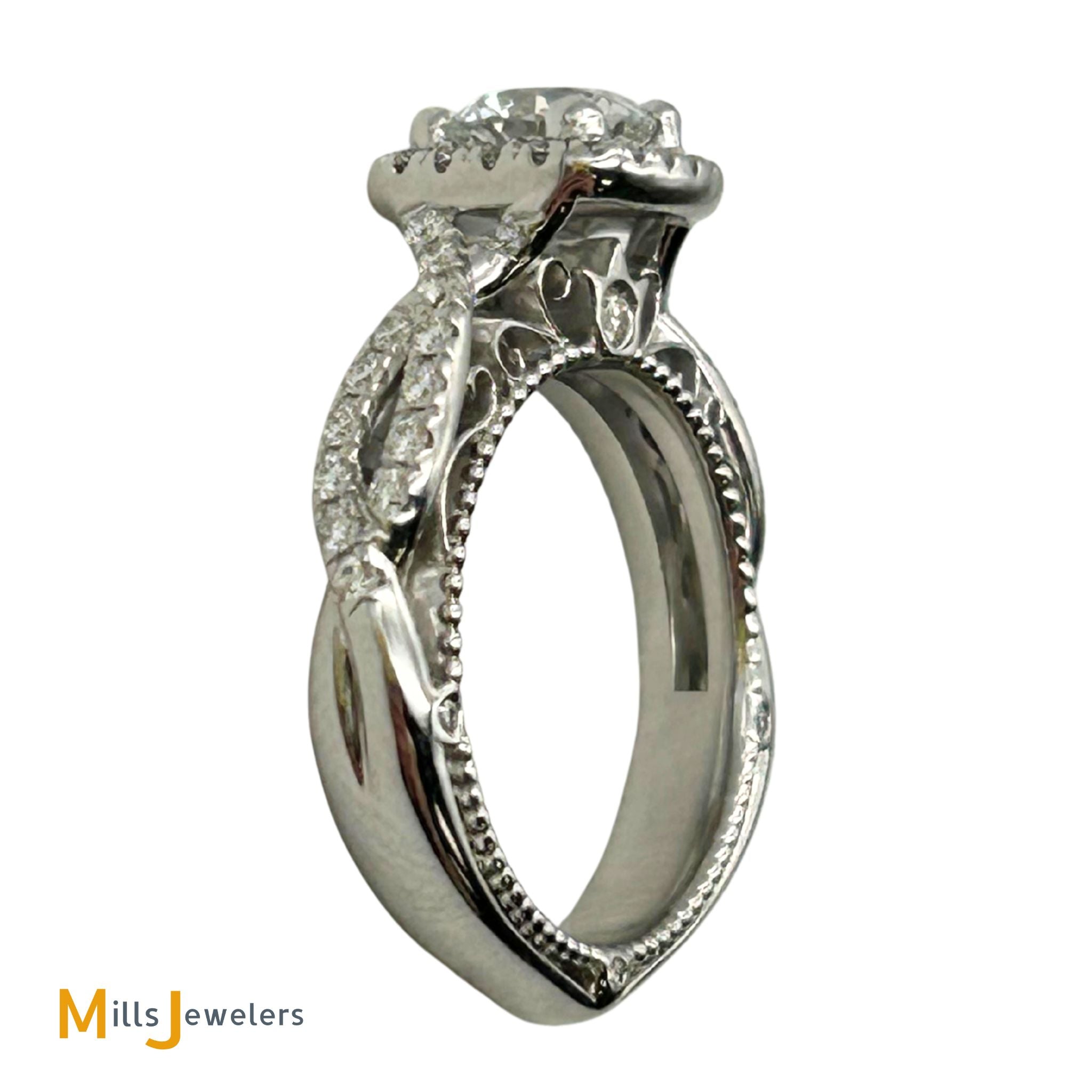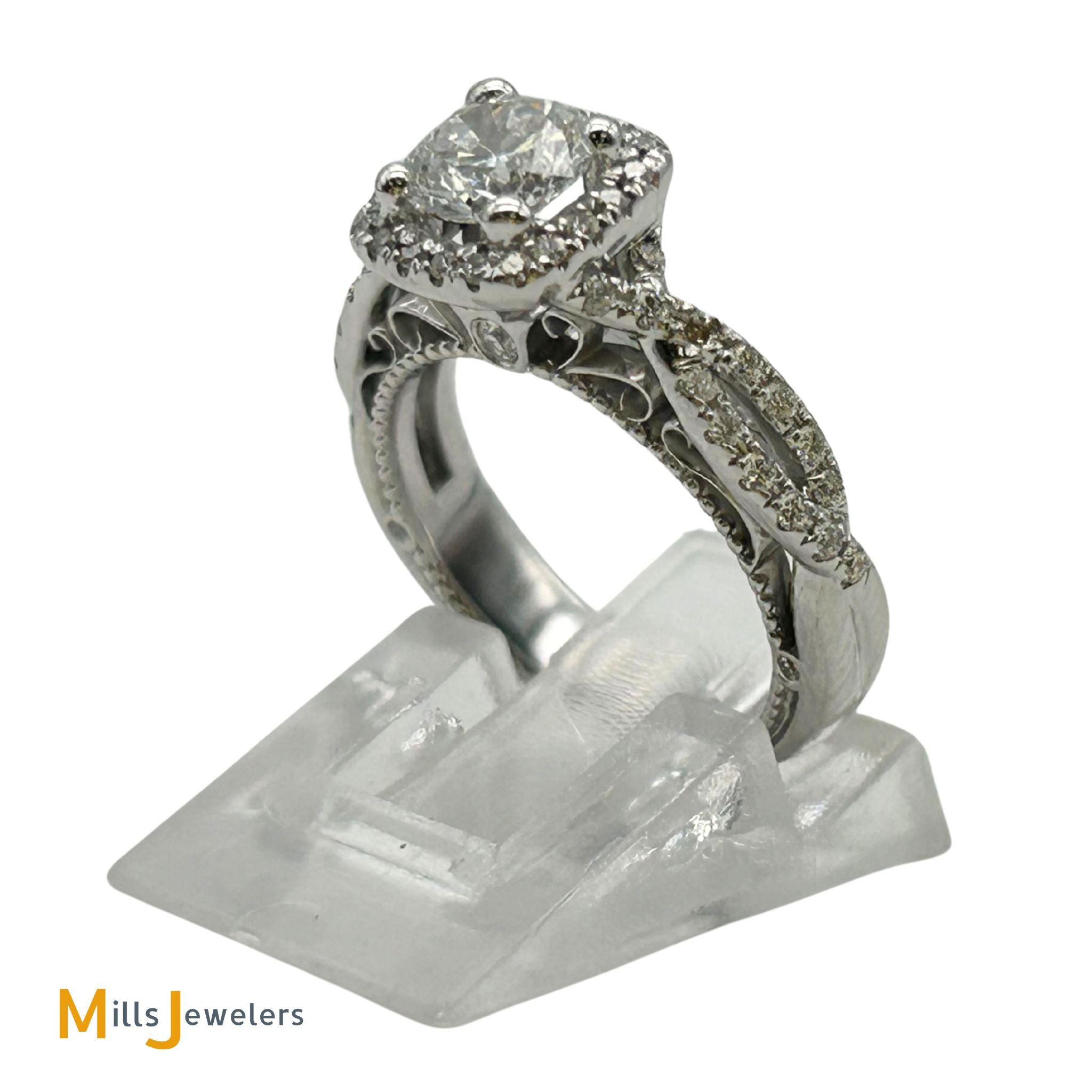 Verragio 14K White Gold .70ct Round Brilliant Diamond 1ctw Halo Engagement Ring Size 3.5