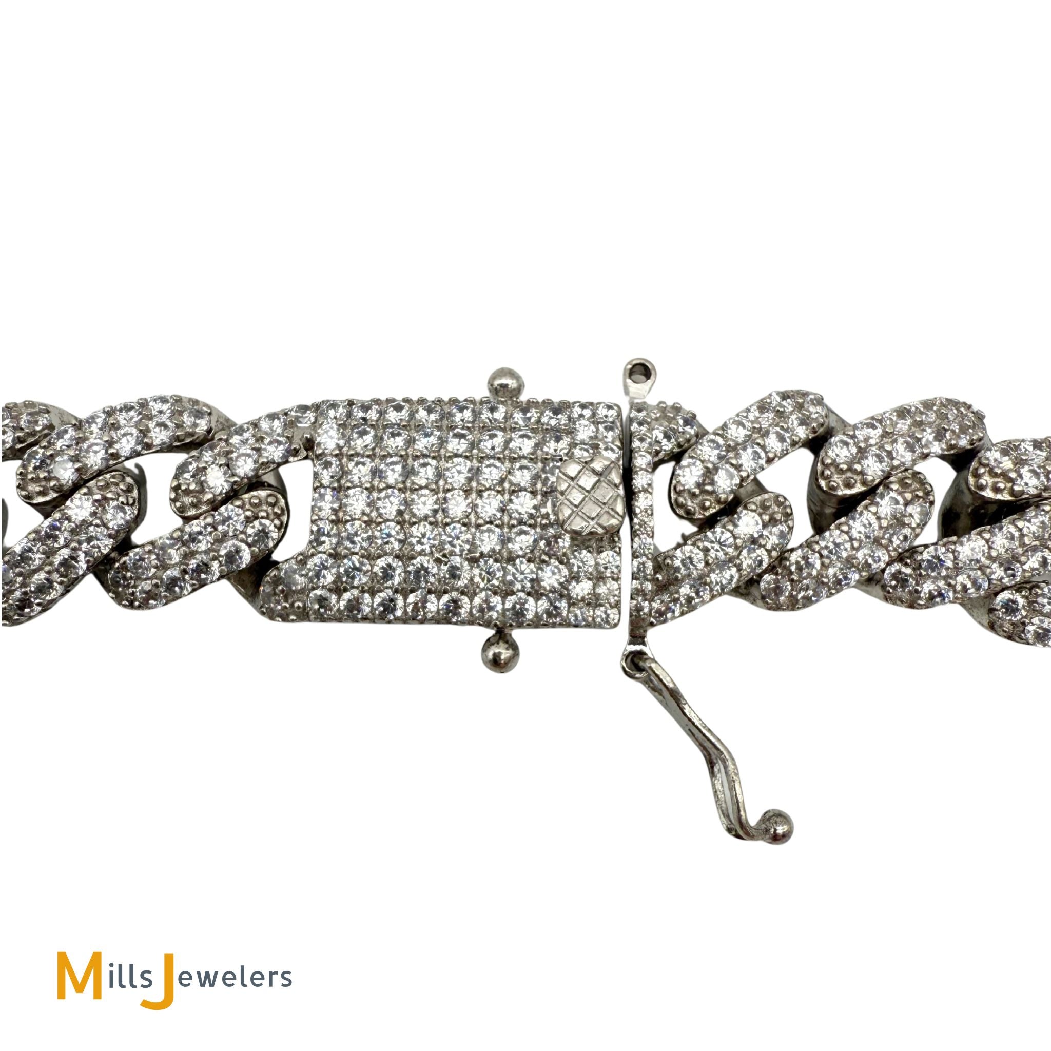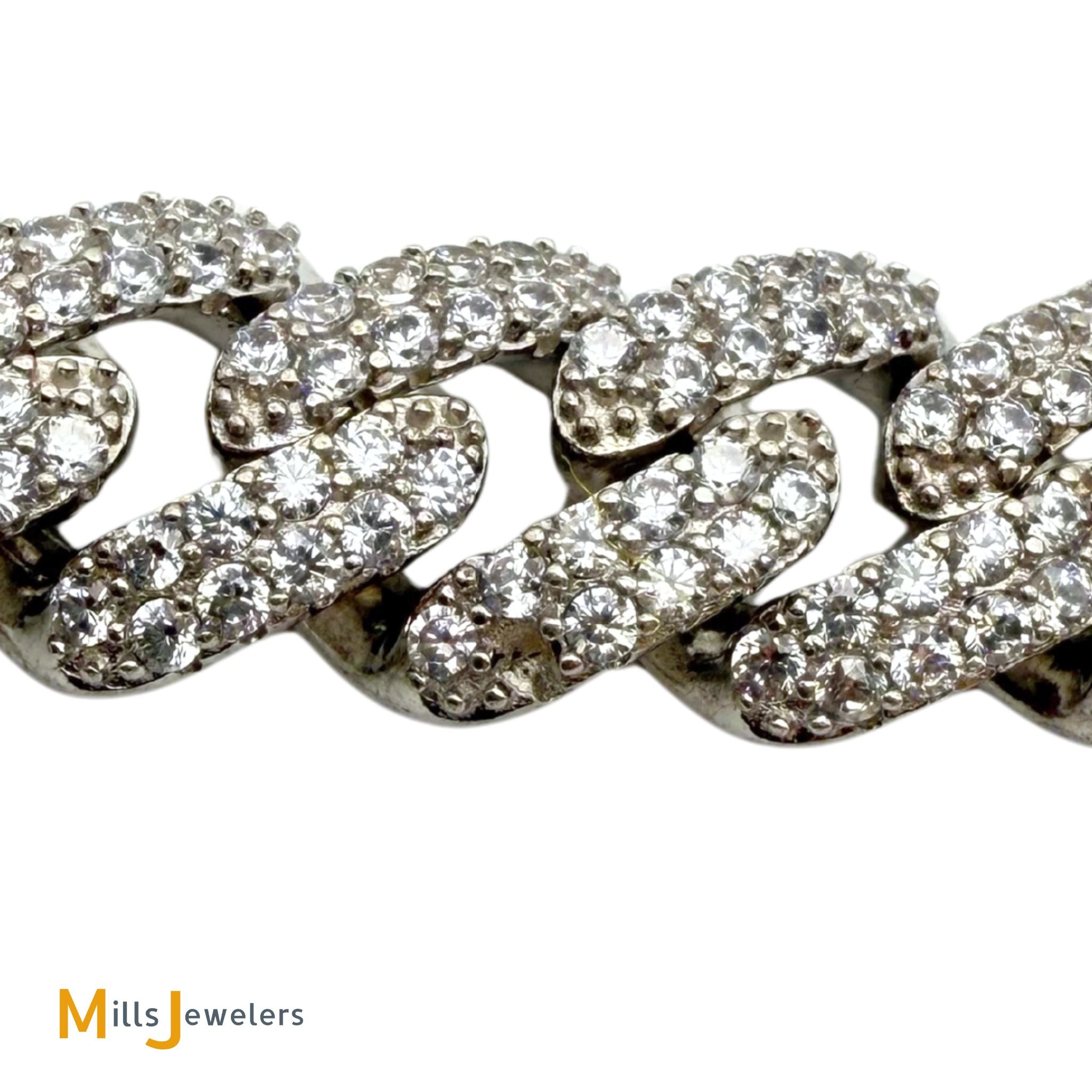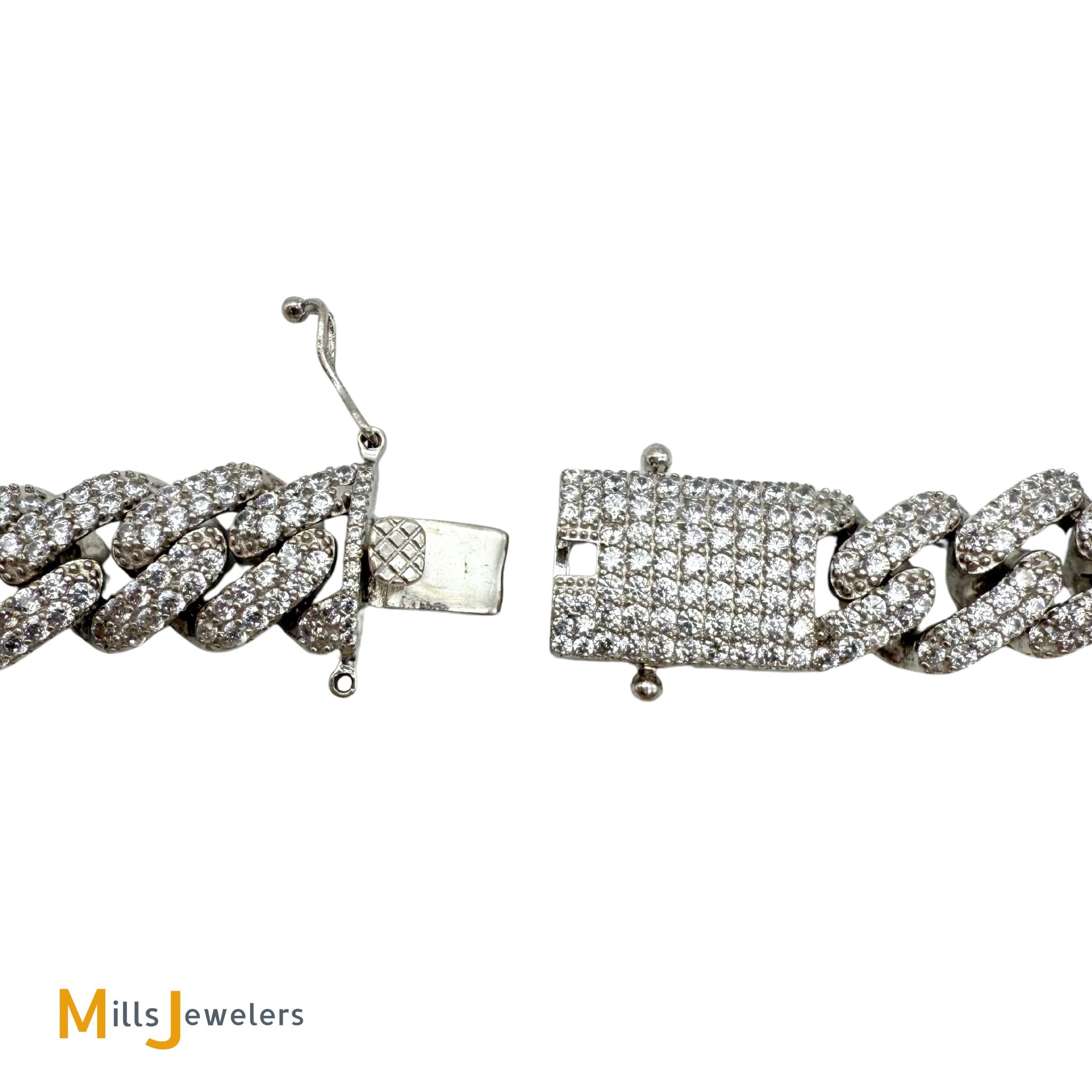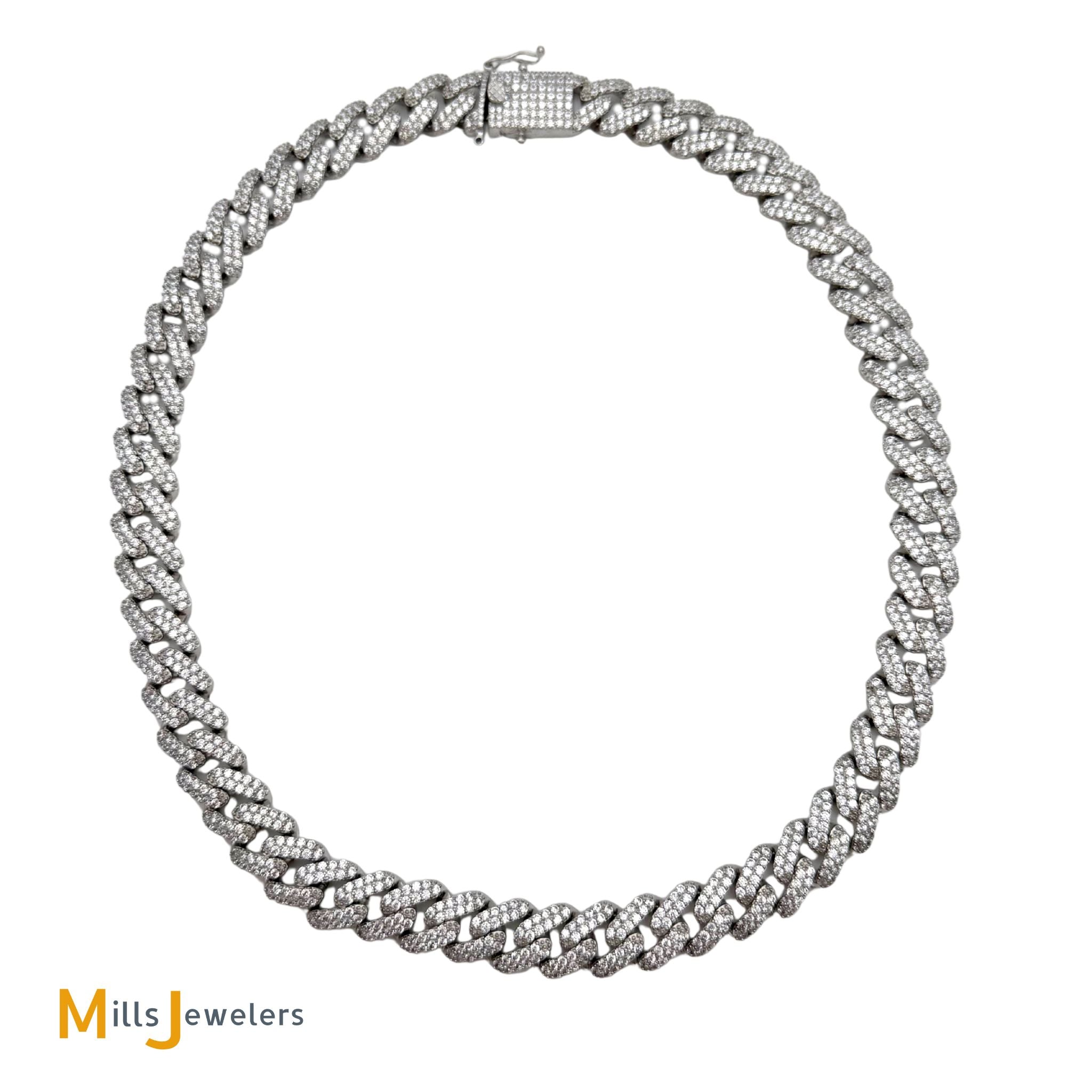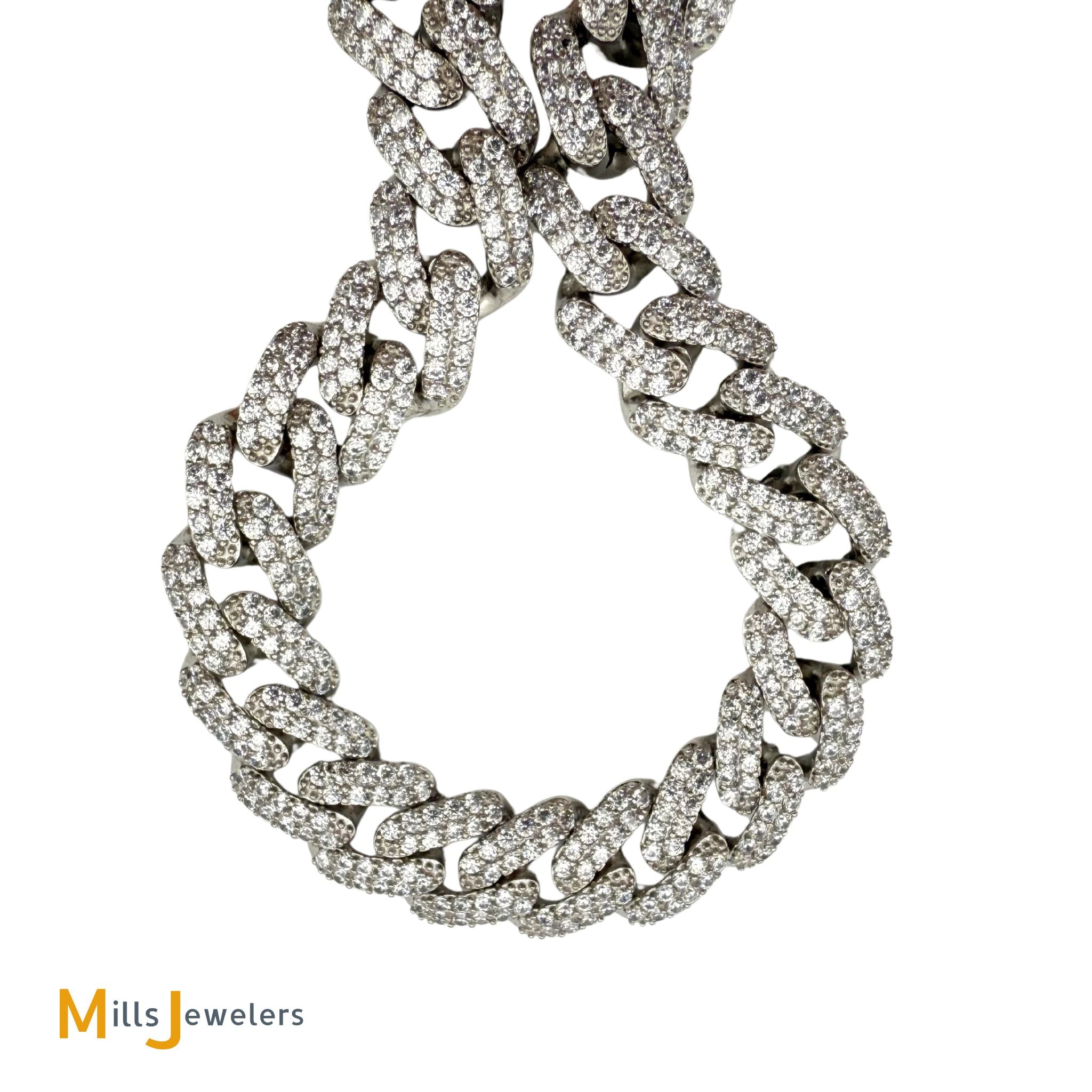 Sterling Silver 925 Cubic Zirconia Cuban Chain 22” Necklace