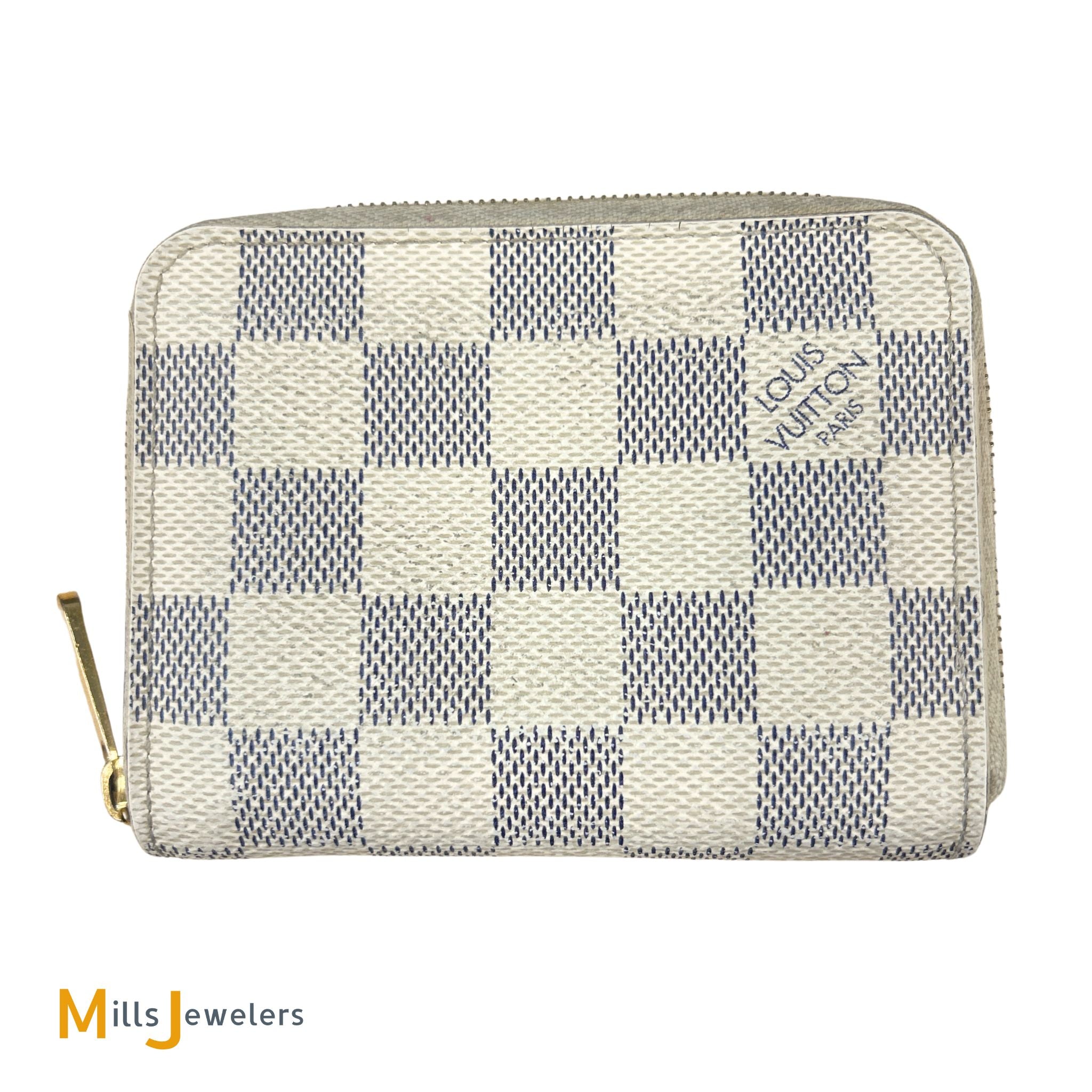 The Zippy coin purse in Damier Azur canvas features a compact design, which allows it to fit into a pocket or small bag, while still offering all essential functionalities. The zip around closure secures your coins, cards and folded bills.