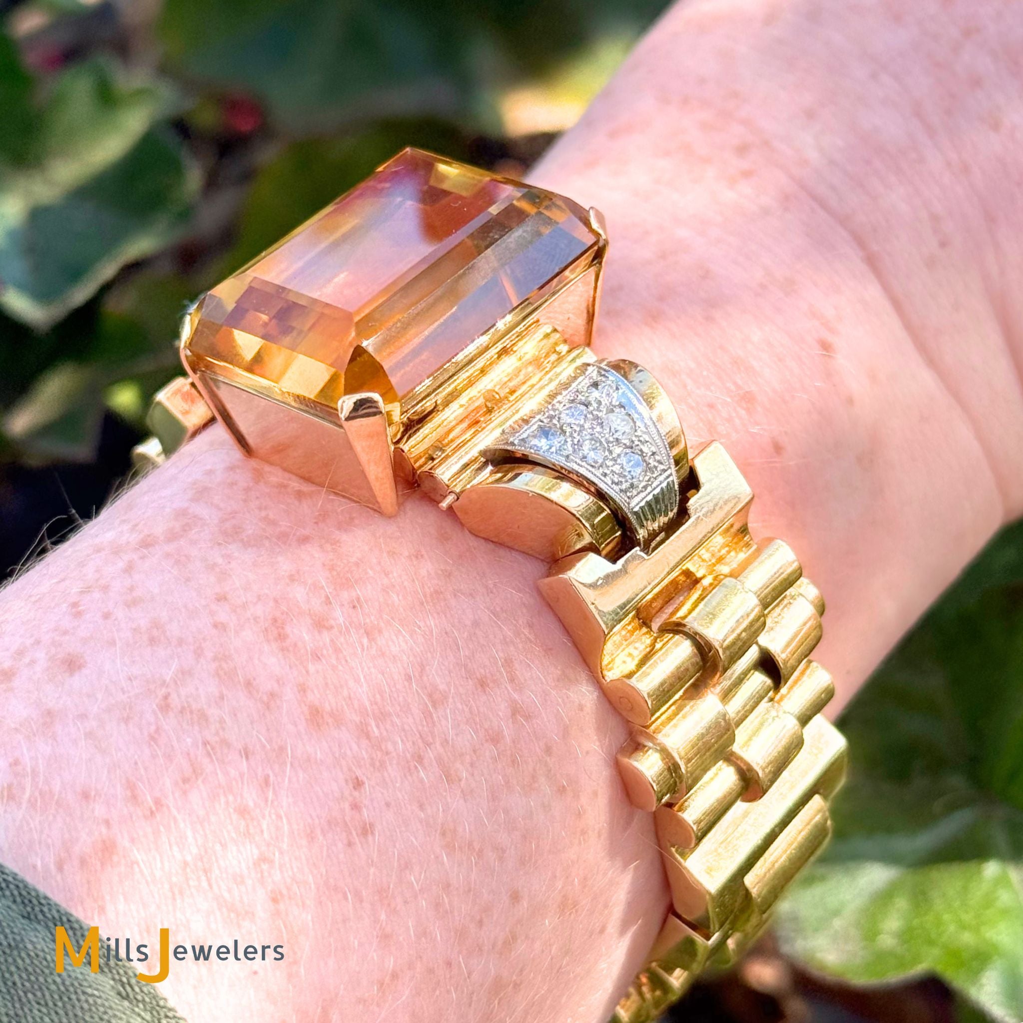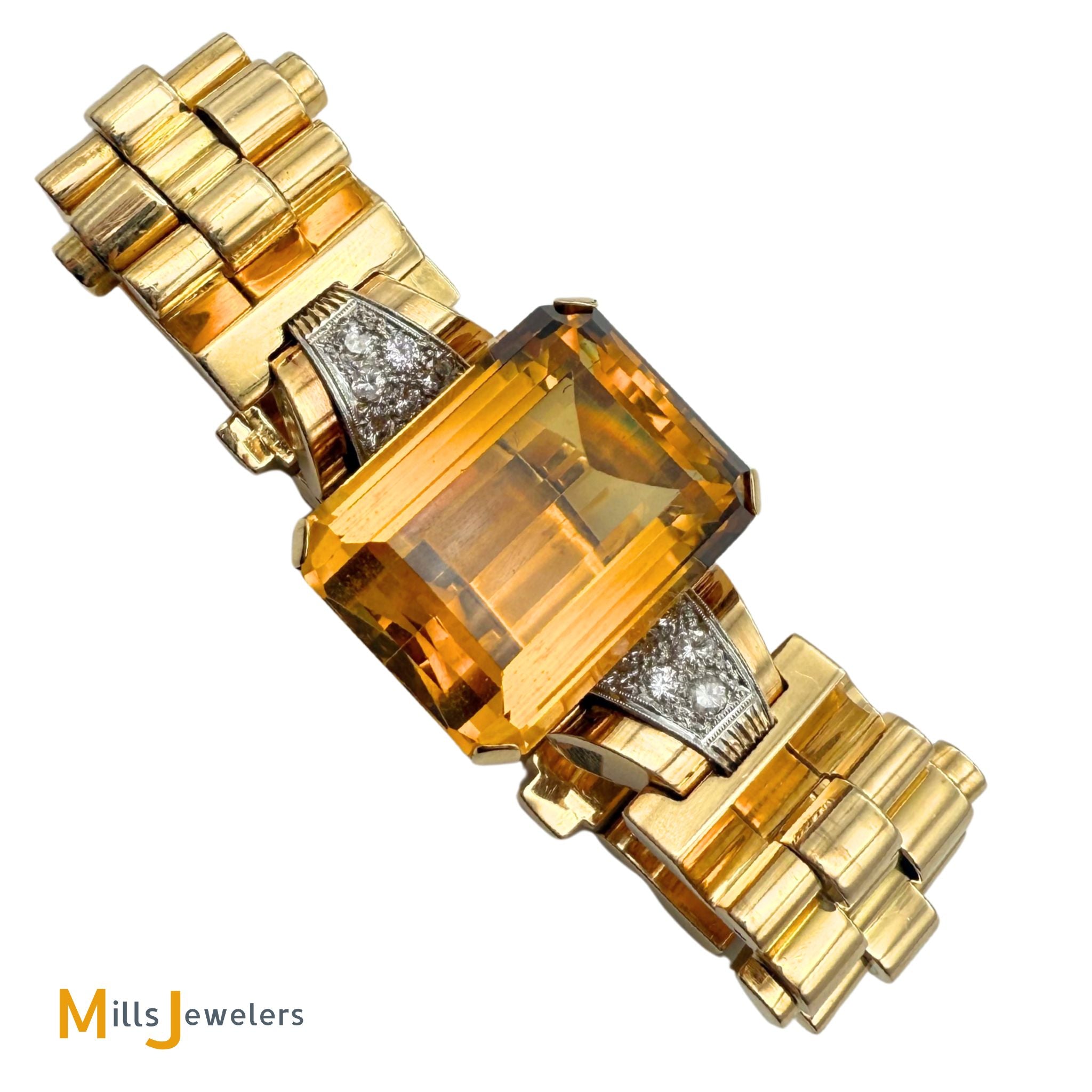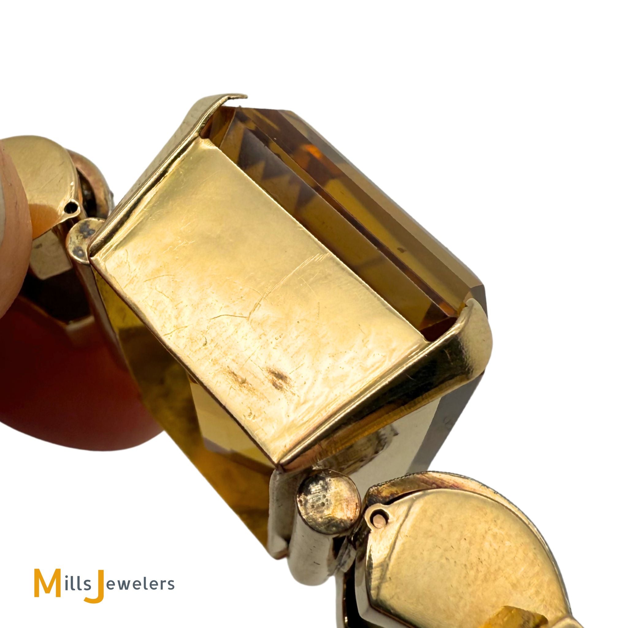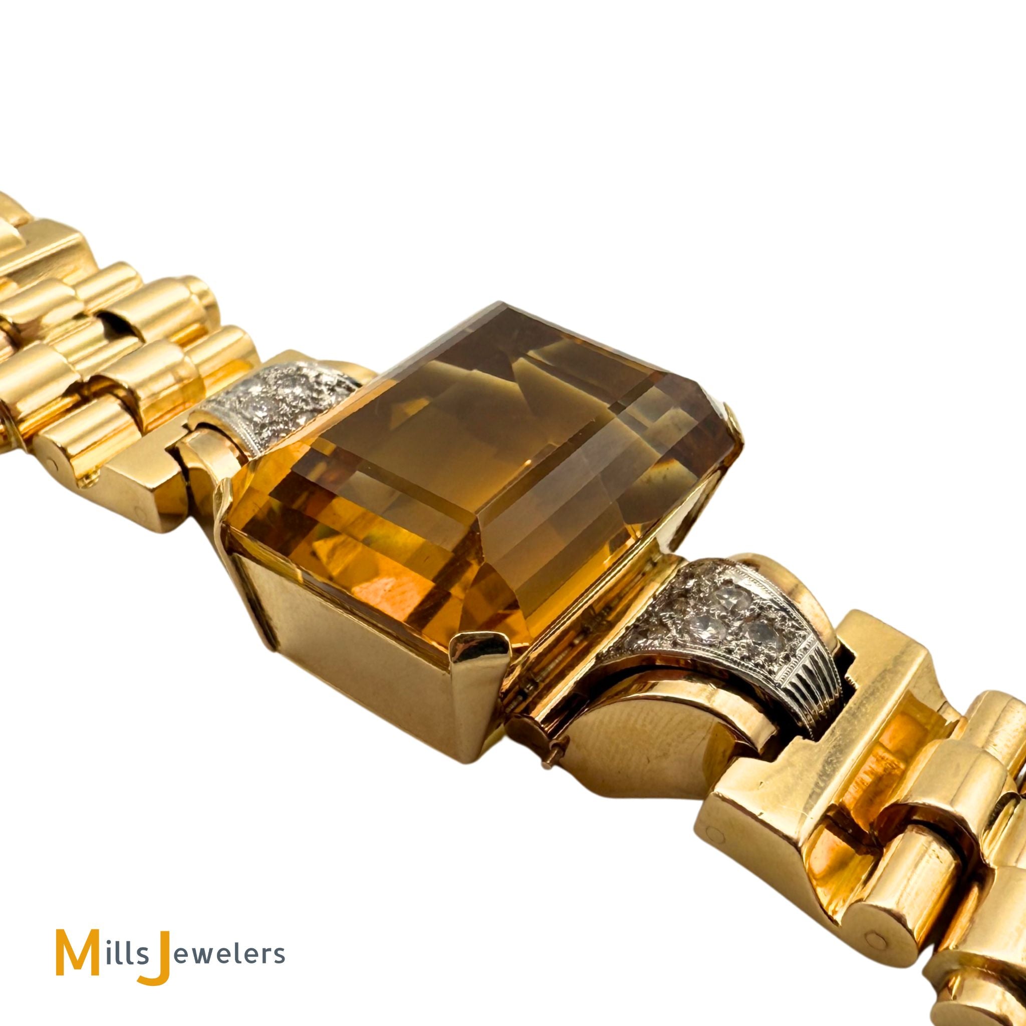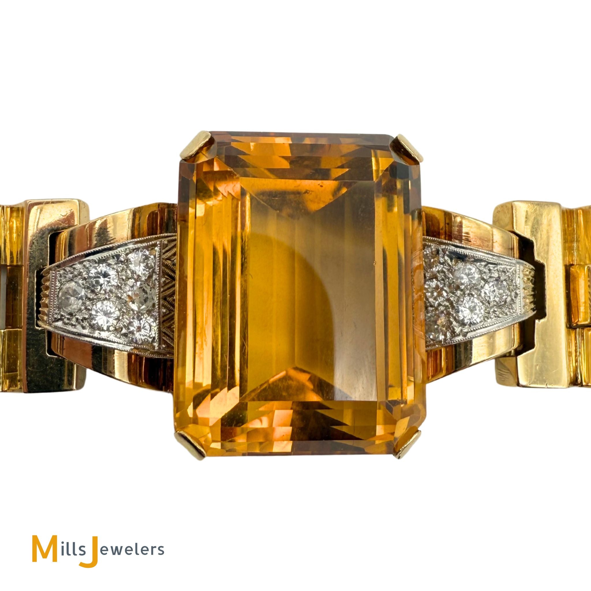 Vintage 18K Yellow Gold 67.5ct Citrine and 0.72ctw Diamond Link Bracelet