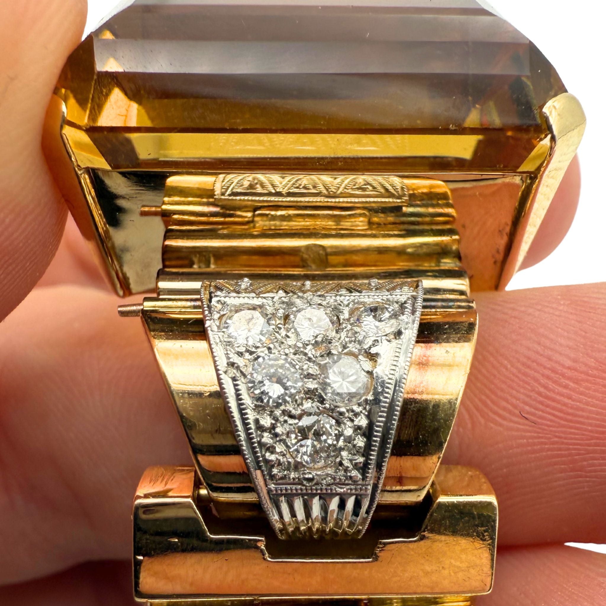 Vintage 18K Two Tone Gold 67.5ct Citrine and 0.72ctw Diamond Link Bracelet