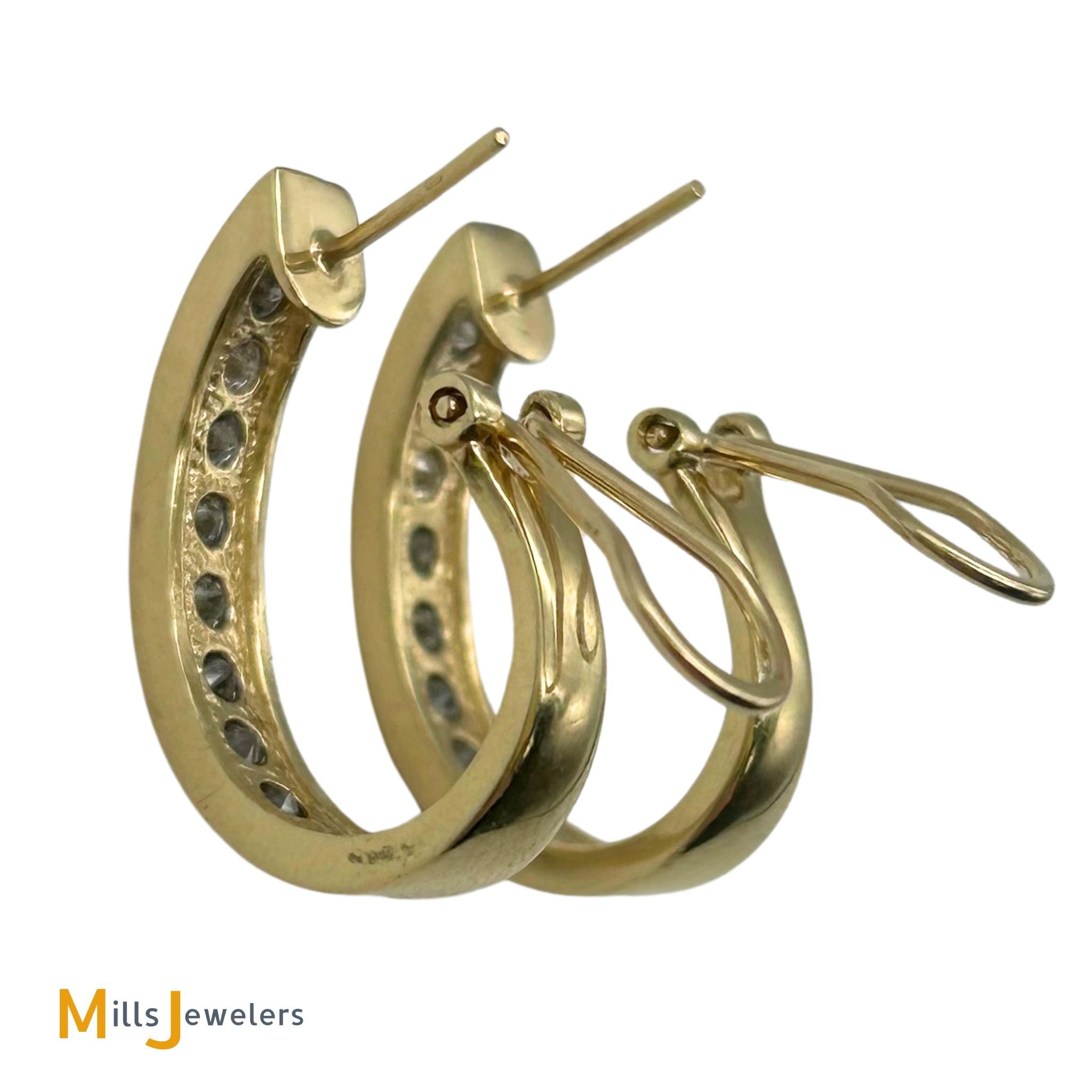 14K Two-Tone Yellow White Gold 1.76ctw Diamond Channel Set Hoop Earrings