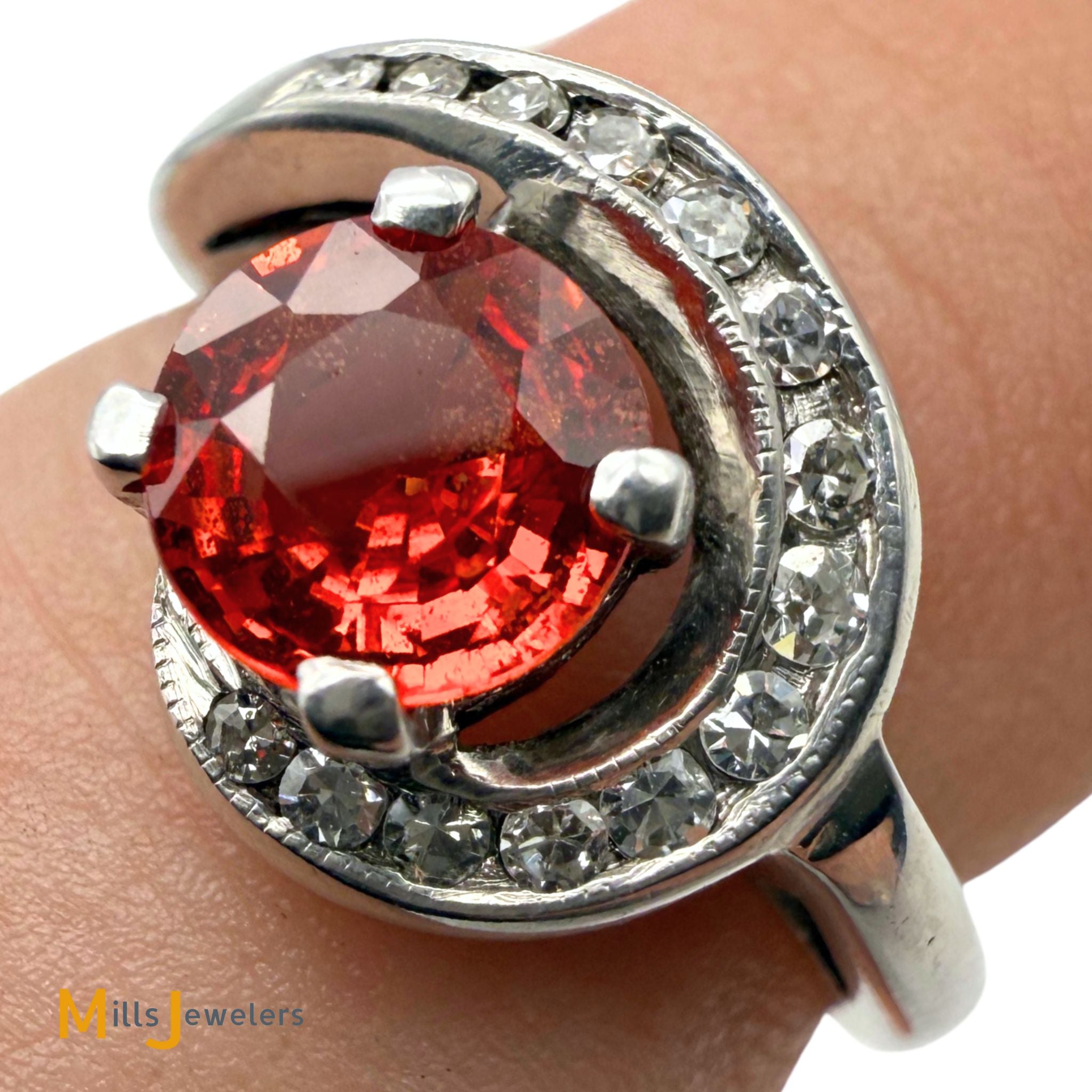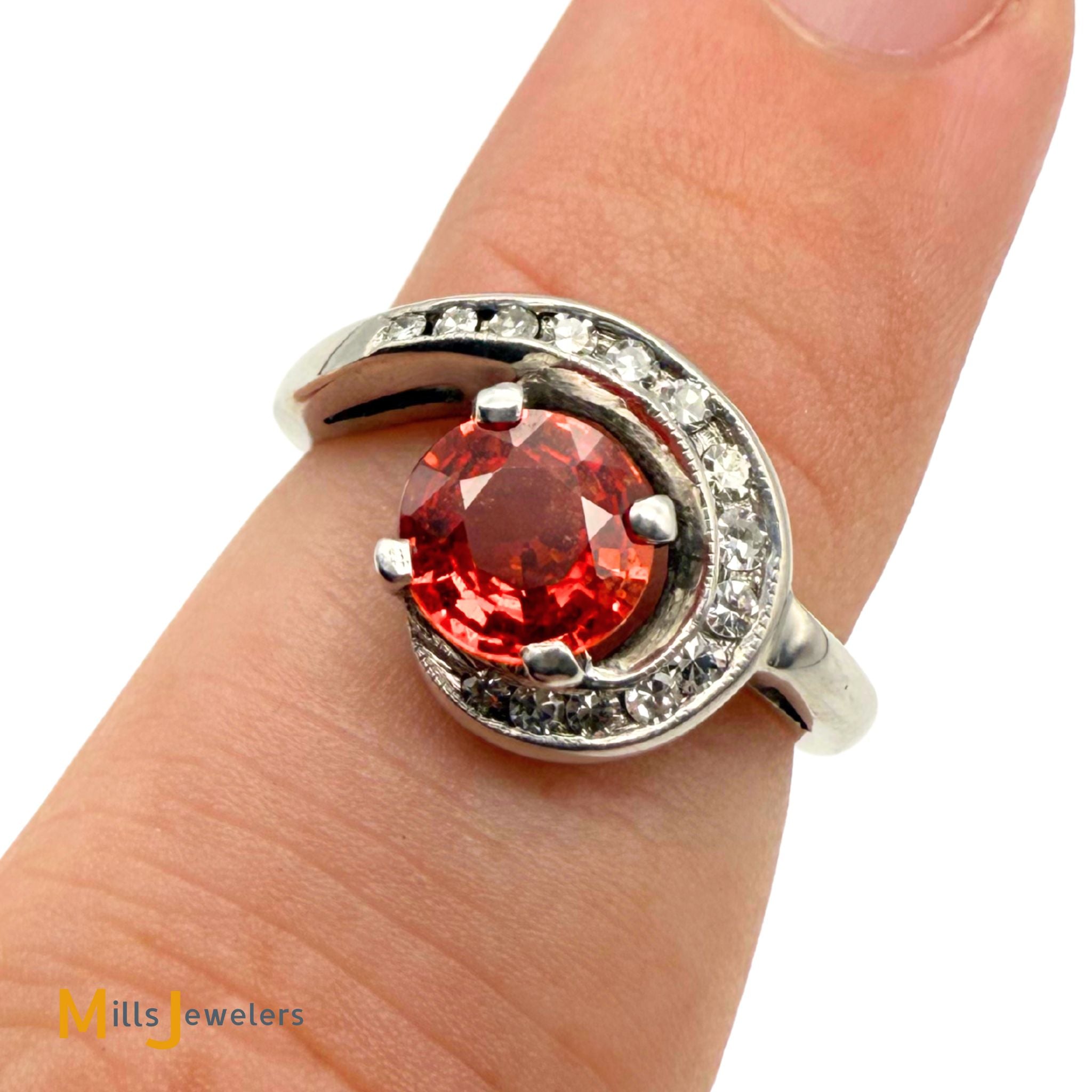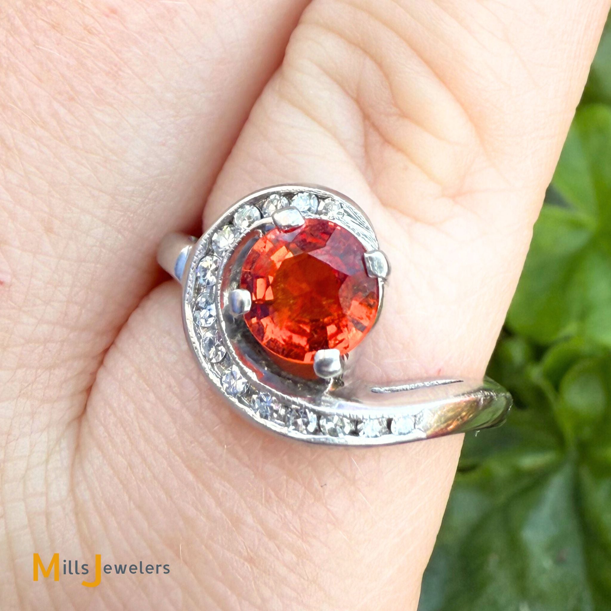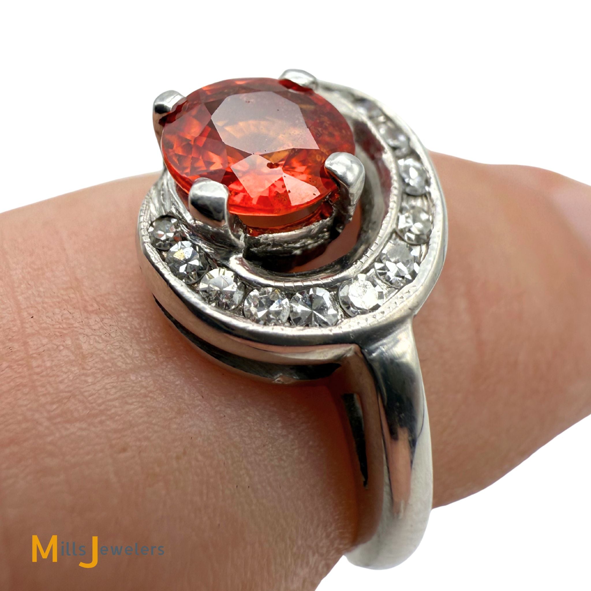 14K White Gold 0.75ct Spessartite Garnet and 0.21ctw Diamond Ring Size 5.25