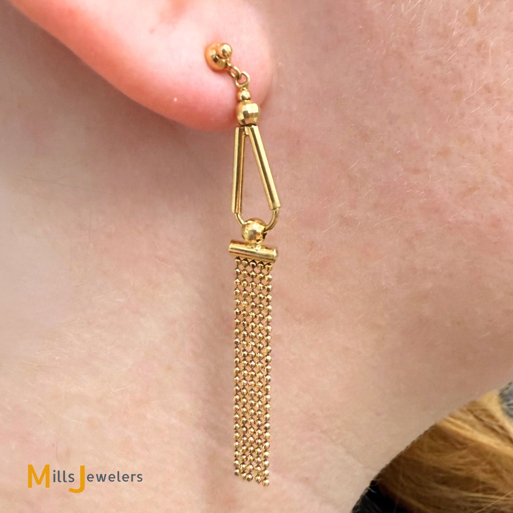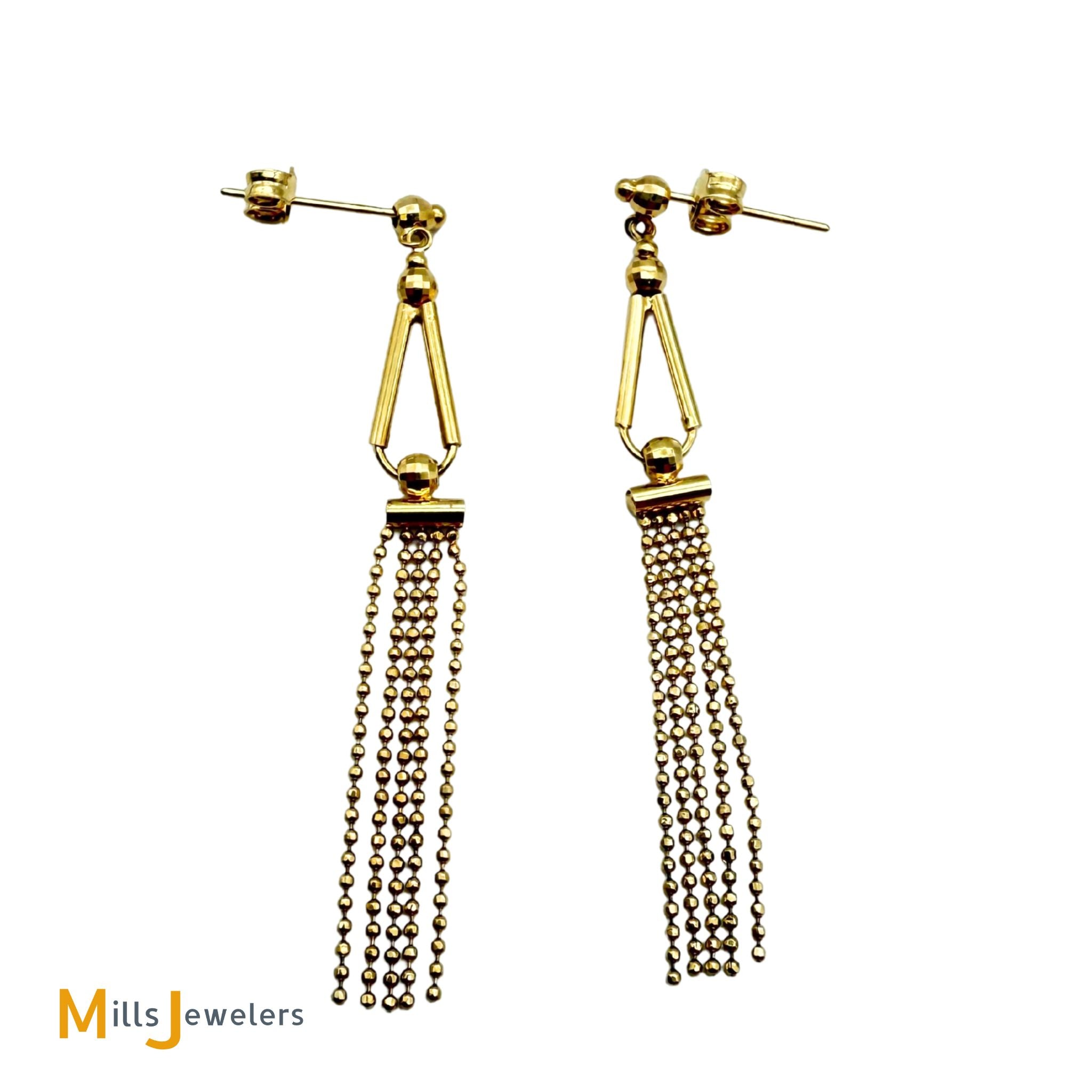 14K Yellow Gold Beaded Geometric Tassel Dangle Earrings