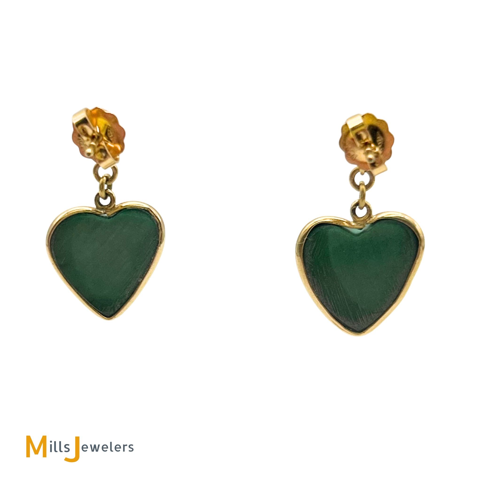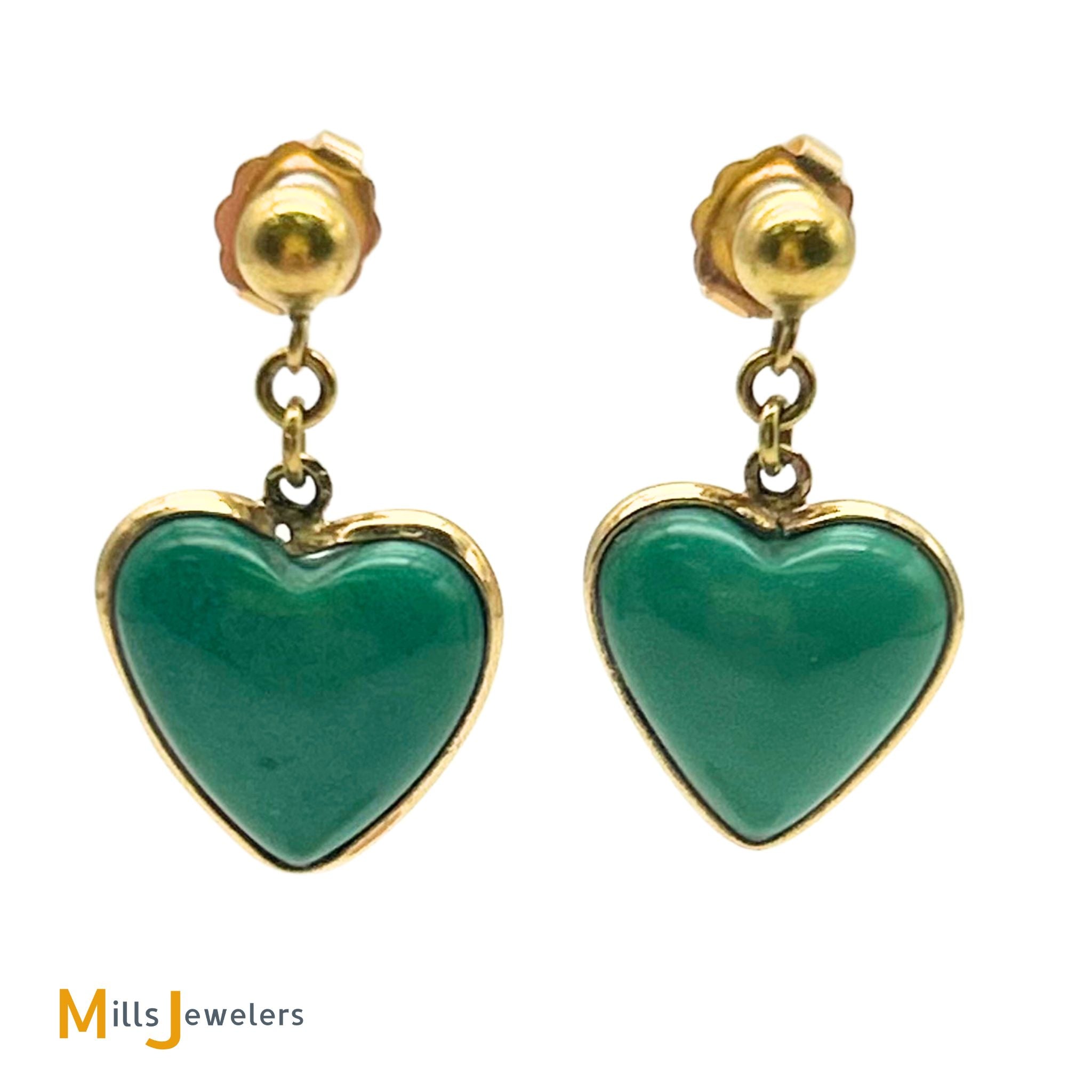 14K Yellow Gold Green Turquoise Dangle Heart Earrings