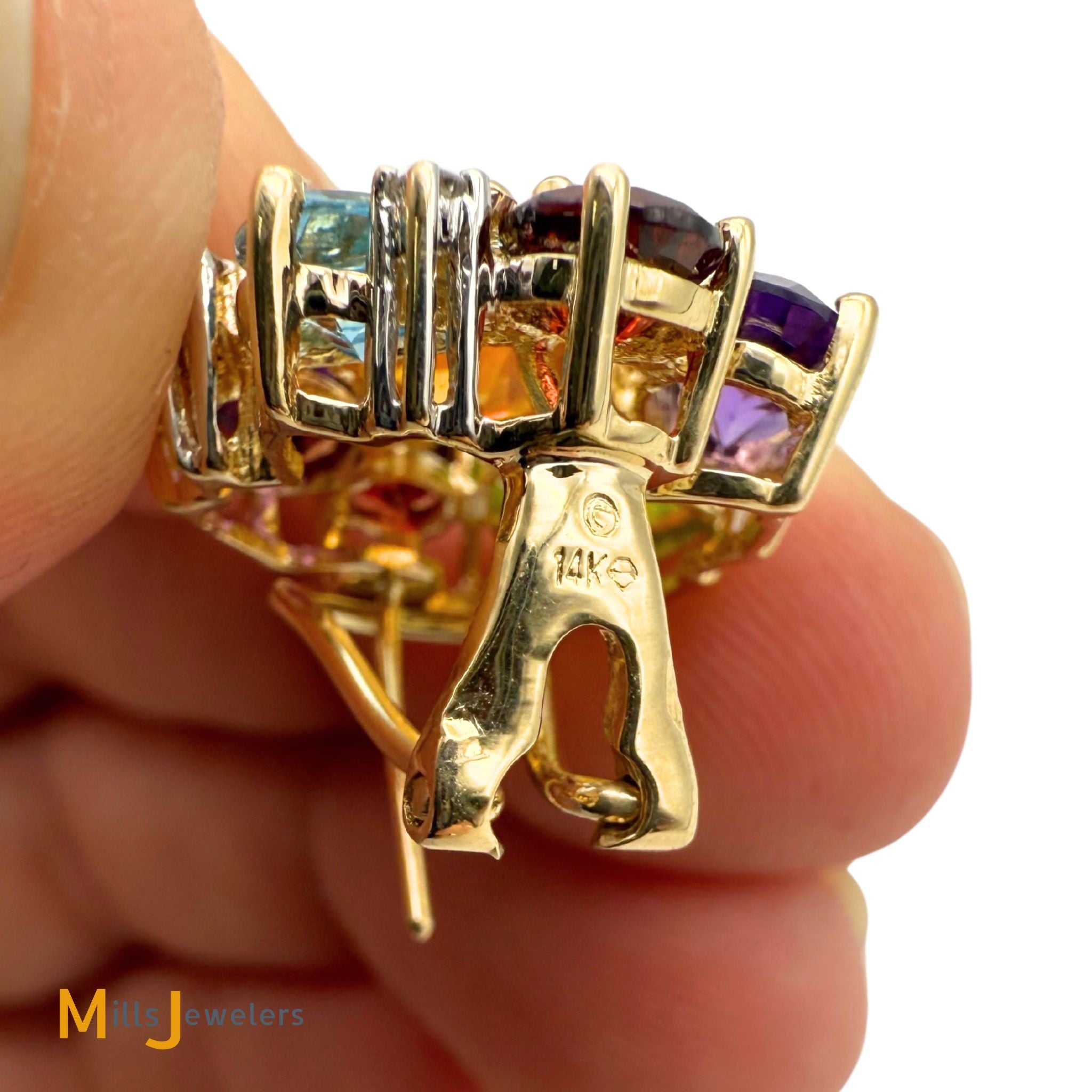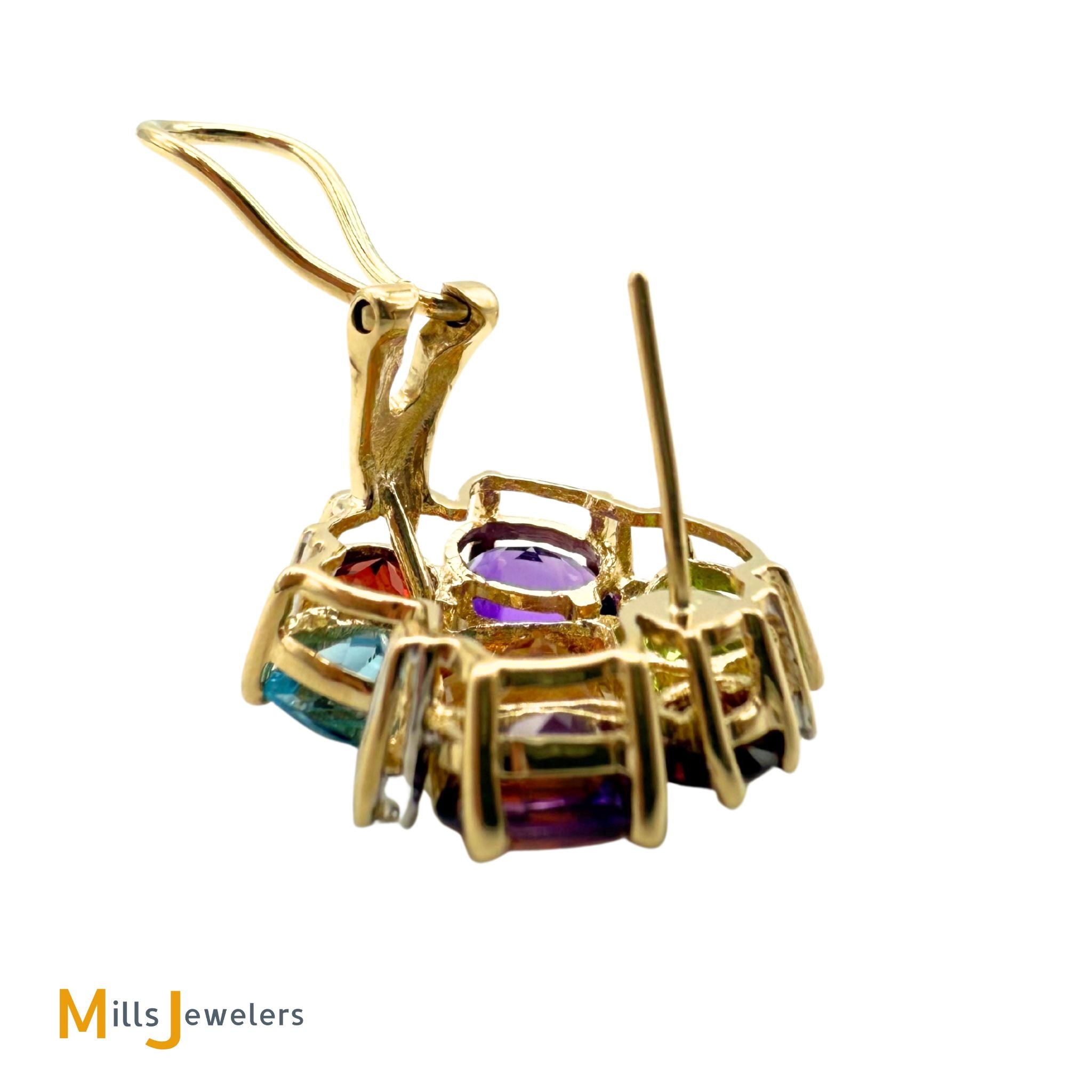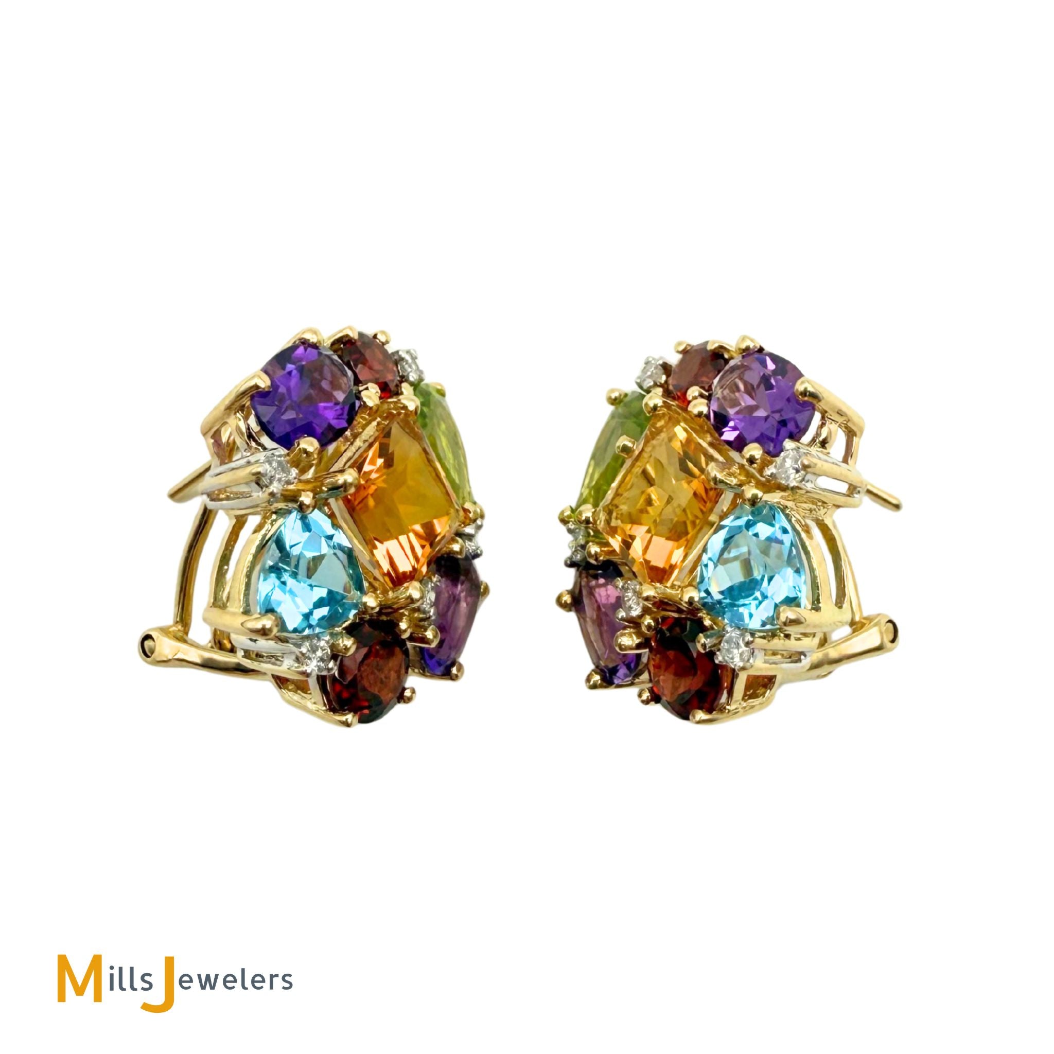 14k Yellow Gold Multicolor Gemstone and 0.15ctw Diamond Cluster Earrings