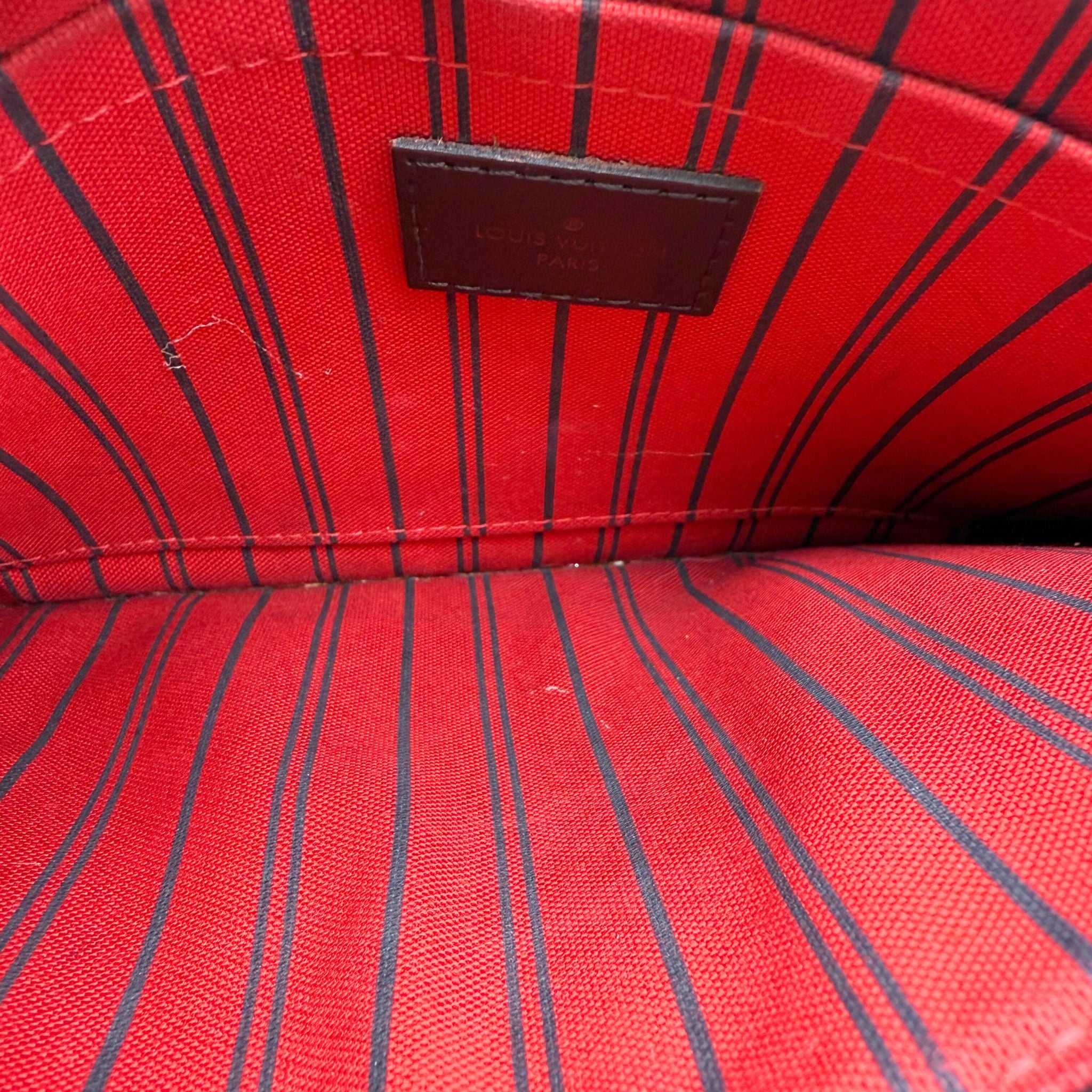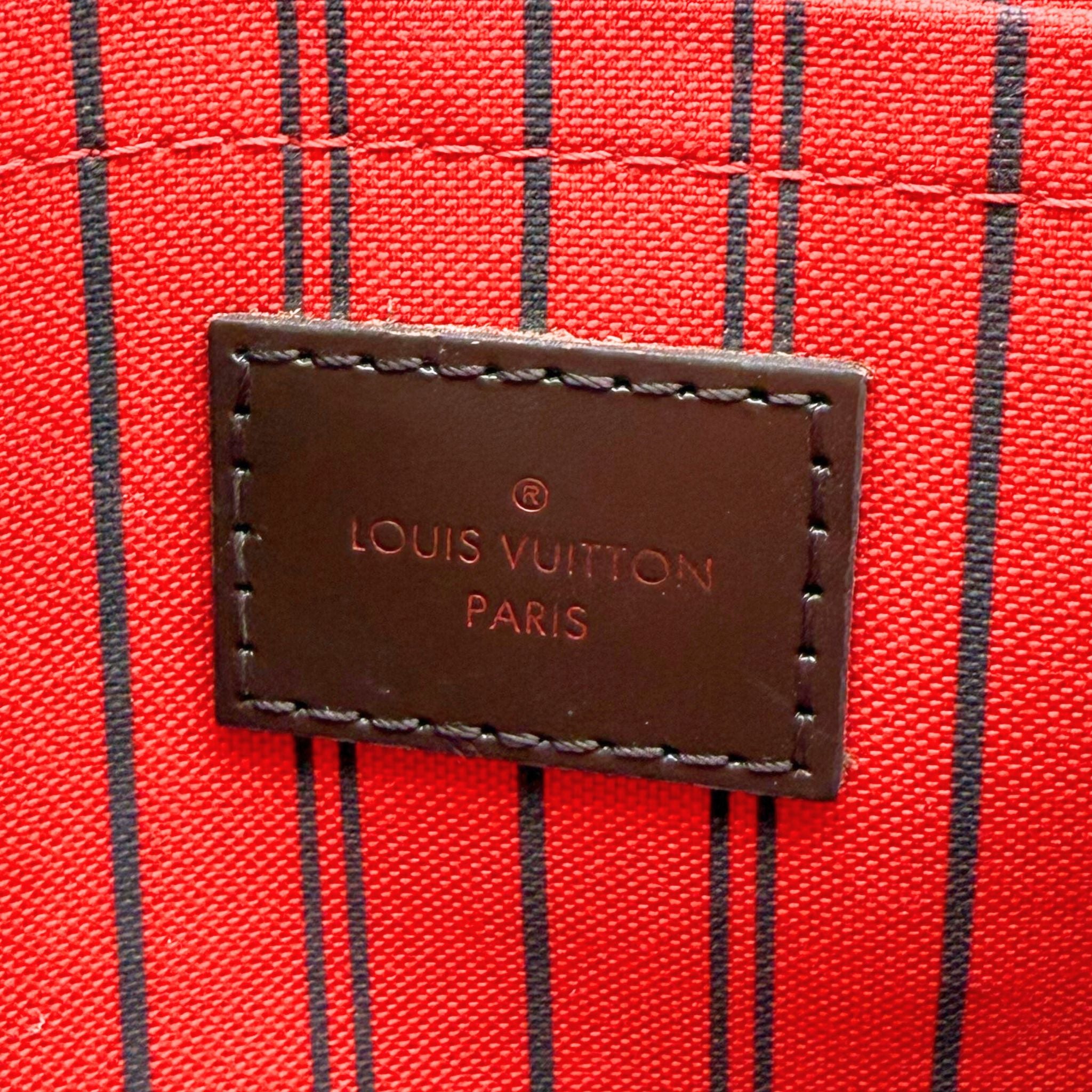 Louis Vuitton Damier Ebene Neverfull Pochette in Cerise Red 2016