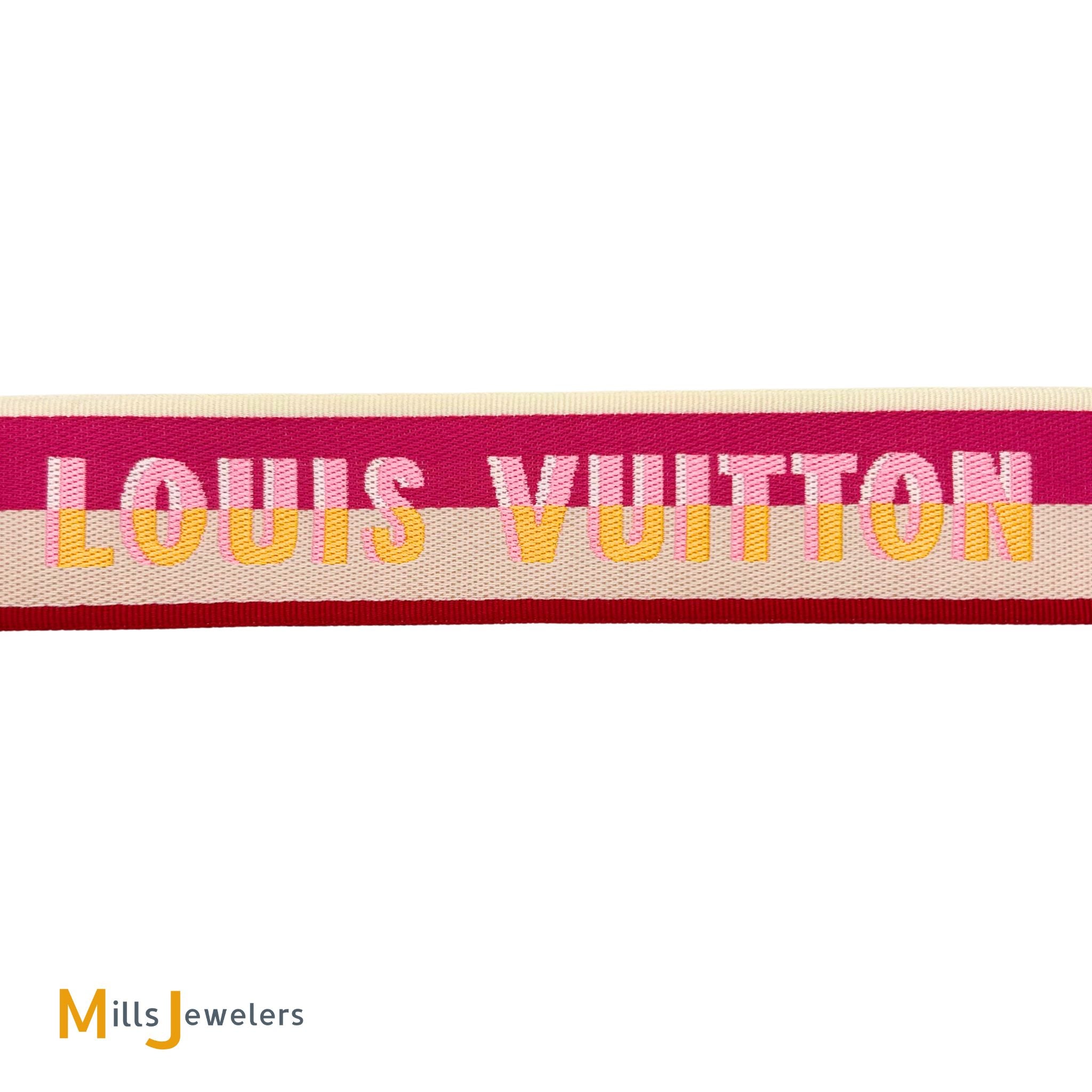 - Material: Fuchsia, ivory and yellow nylon with “Louis Vuitton” in a Jacquard weave with calfskin leather accents.