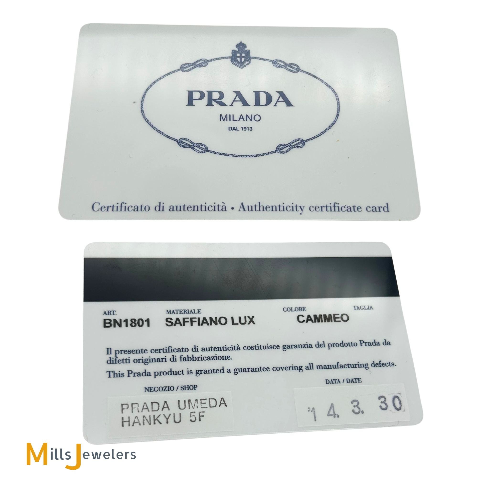 This PRADA® handbag has been authenticated. PRADA® is a registered trademark of PRADA®. Mills Jewelers & Loan is not affiliated with PRADA®.