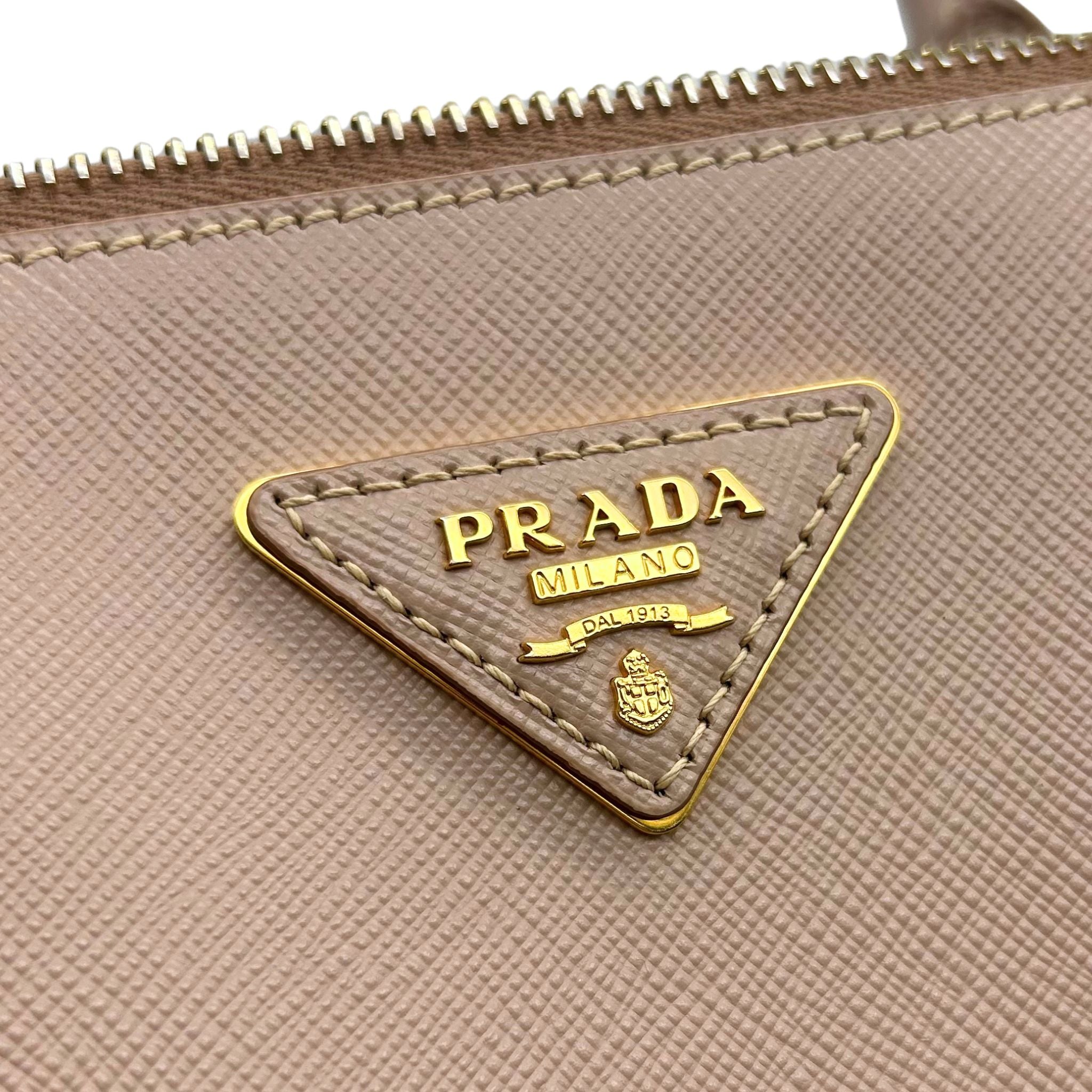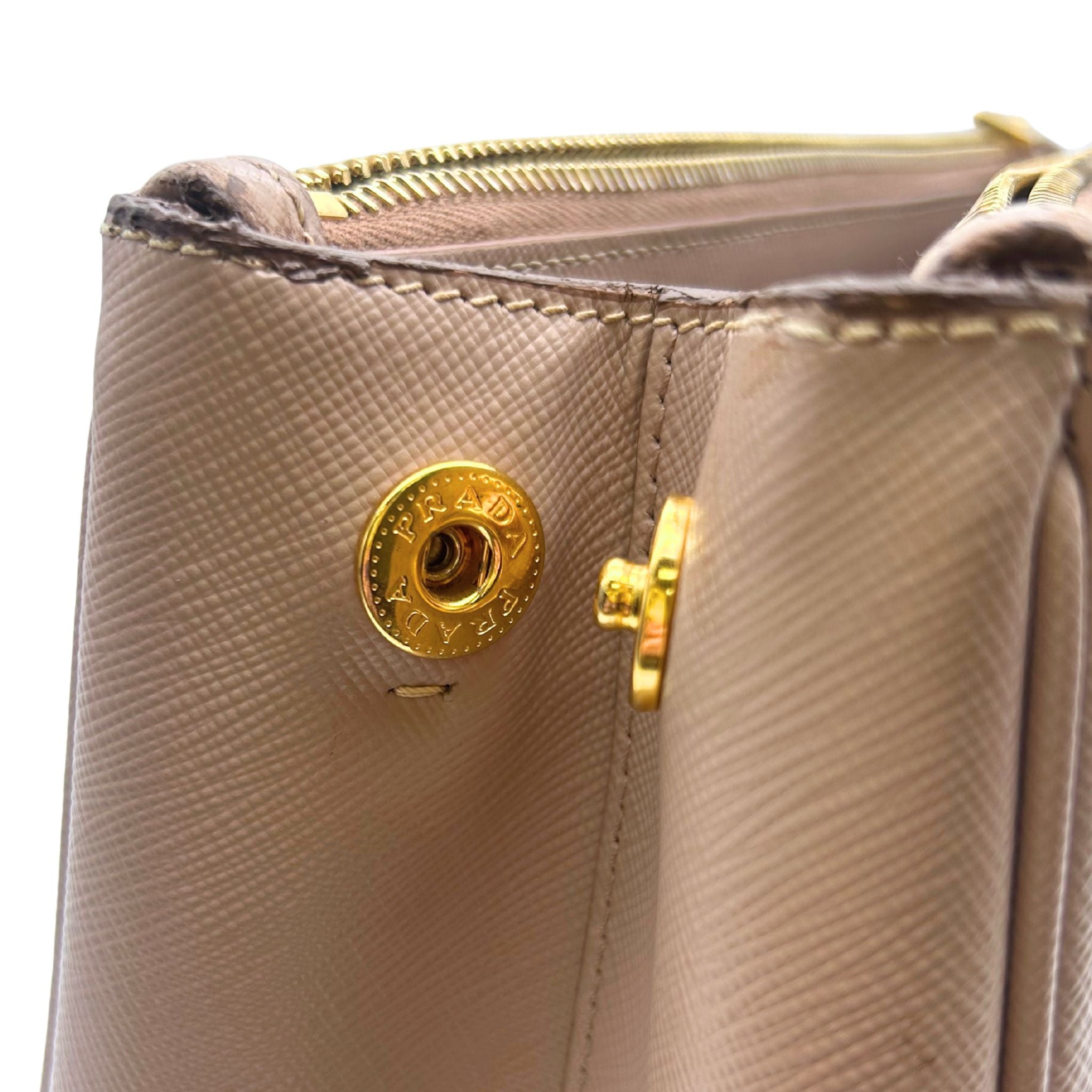 PRADA Saffiano Leather Galleria Lux Double Zip Crossbody Bag in Cammeo Pink
