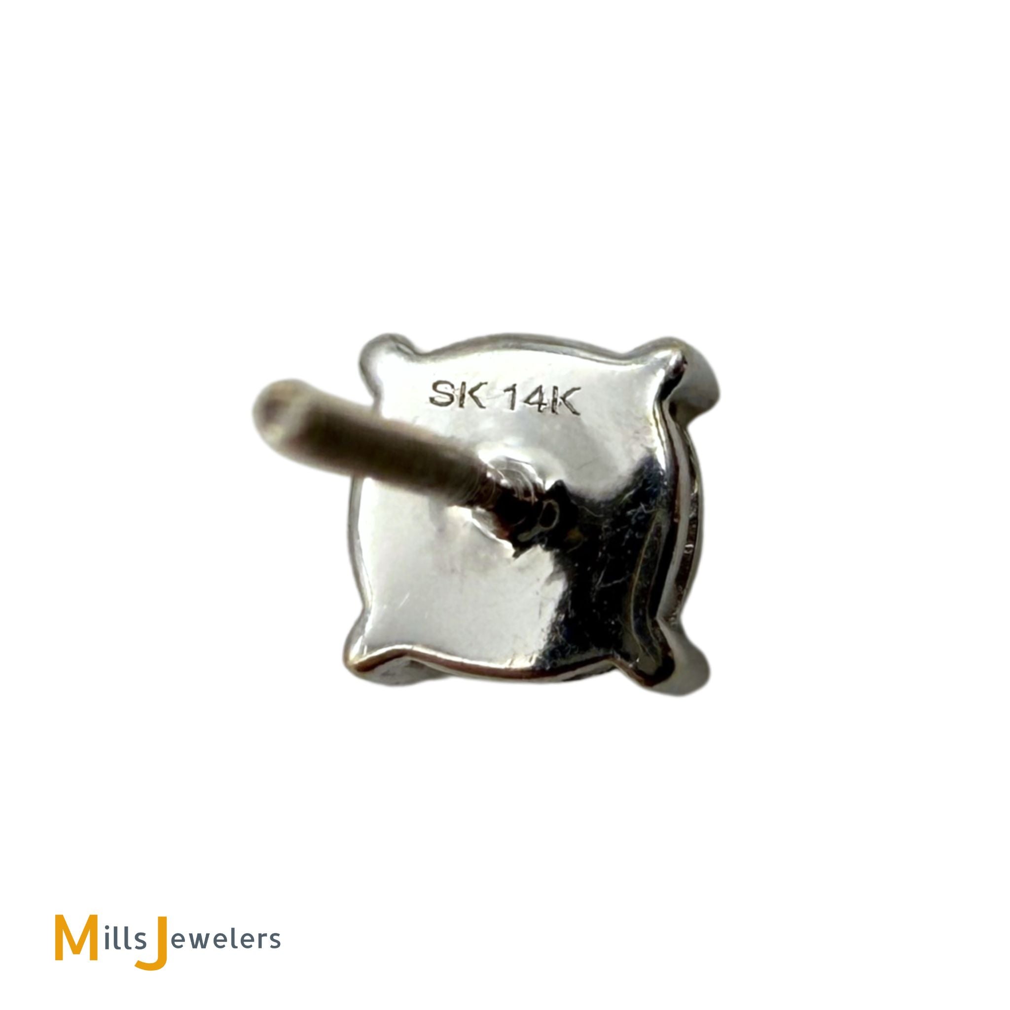 Signed SK 14K White Gold 0.80ctw Diamond Post Screwback Earrings