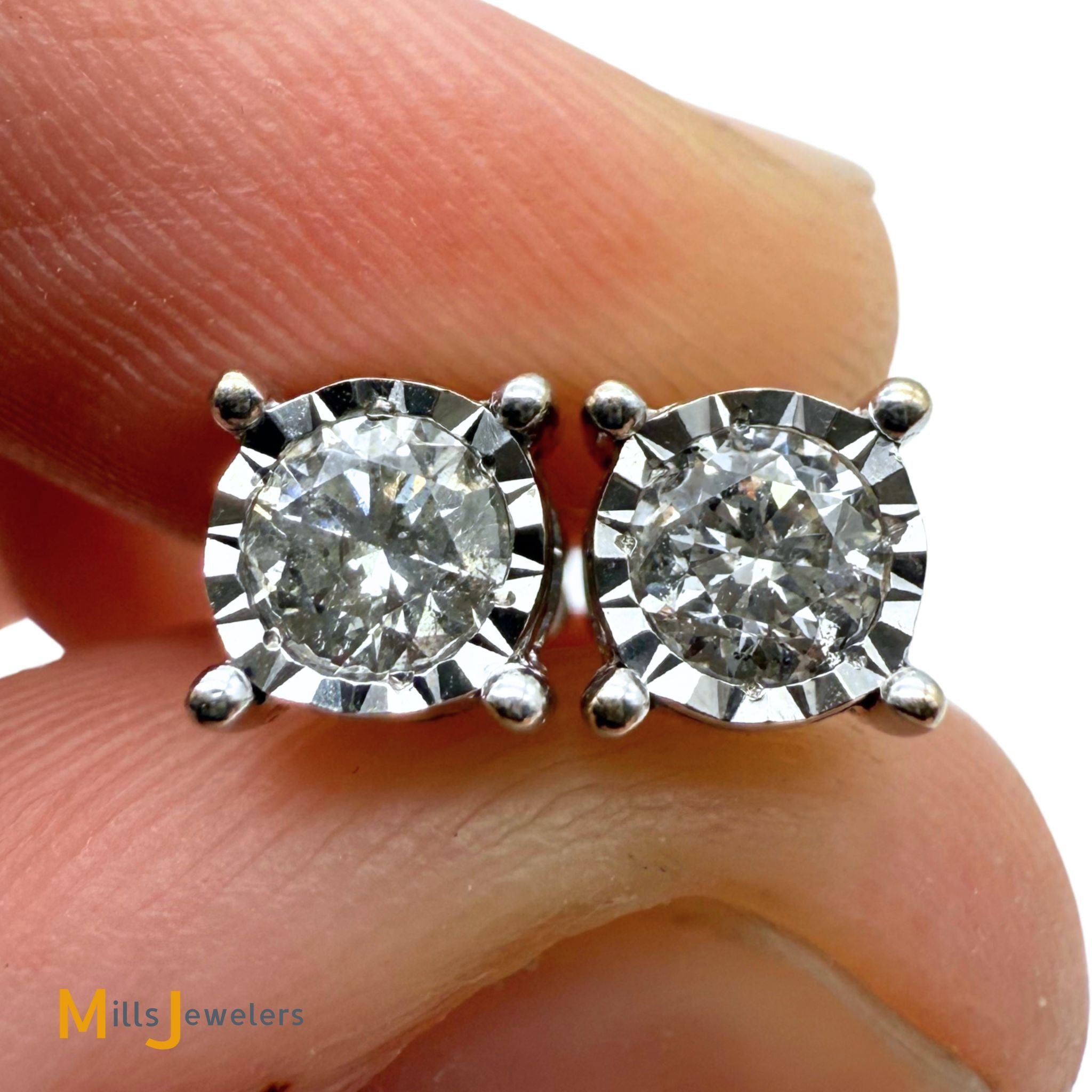 - 2 round brilliant cut natural diamonds; approx. 4.25mm x 4.25mm, 0.28ct each, 0.56ctw, I1 in clarity, H-J in color (total in pair)