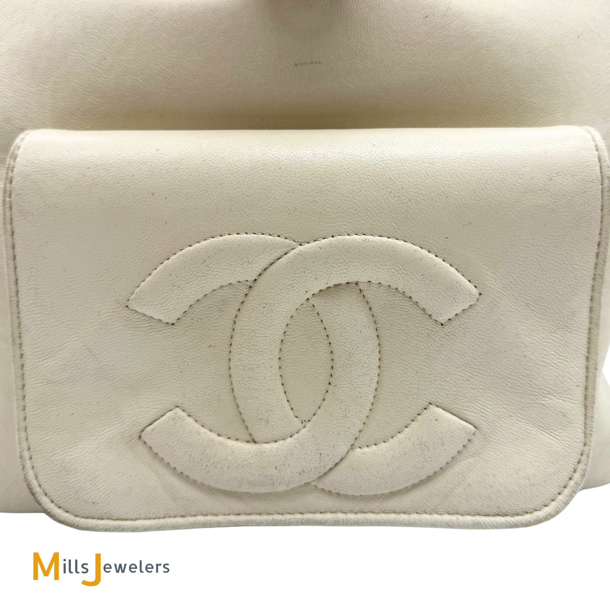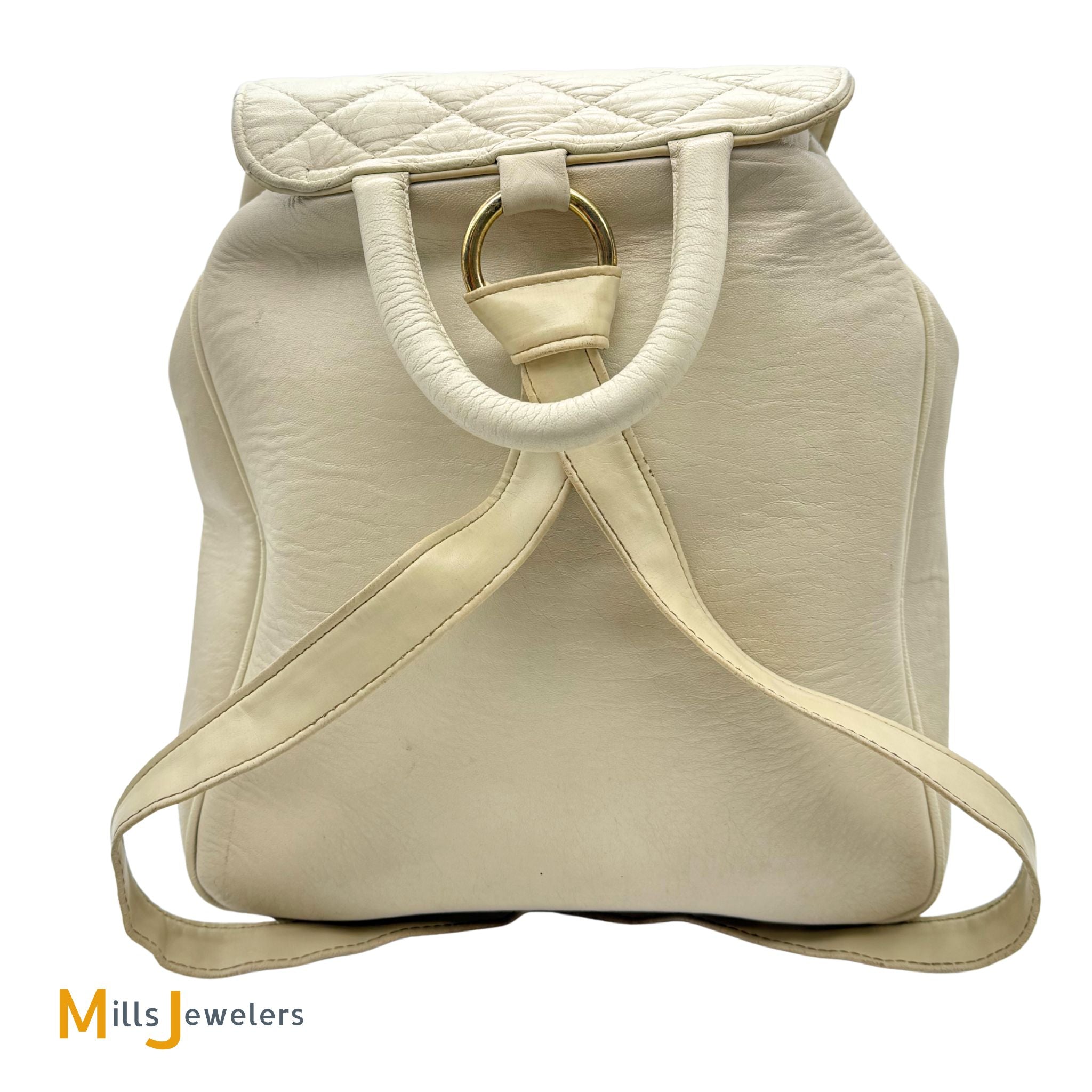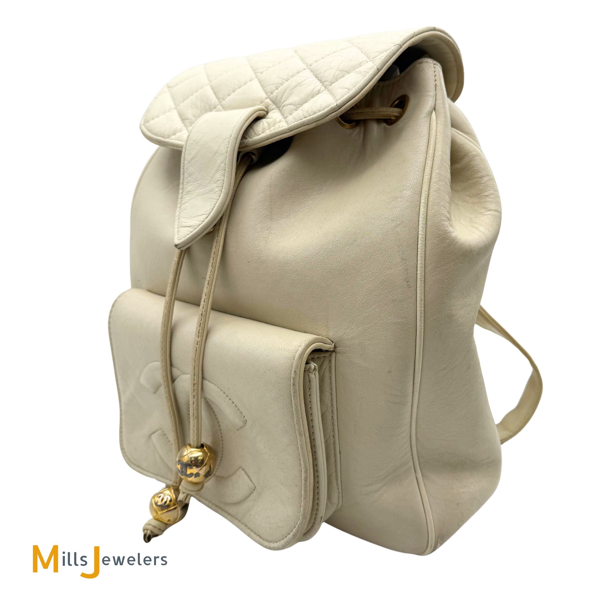 Vintage Chanel Double C Cream Lambskin Drawstring Flap Backpack