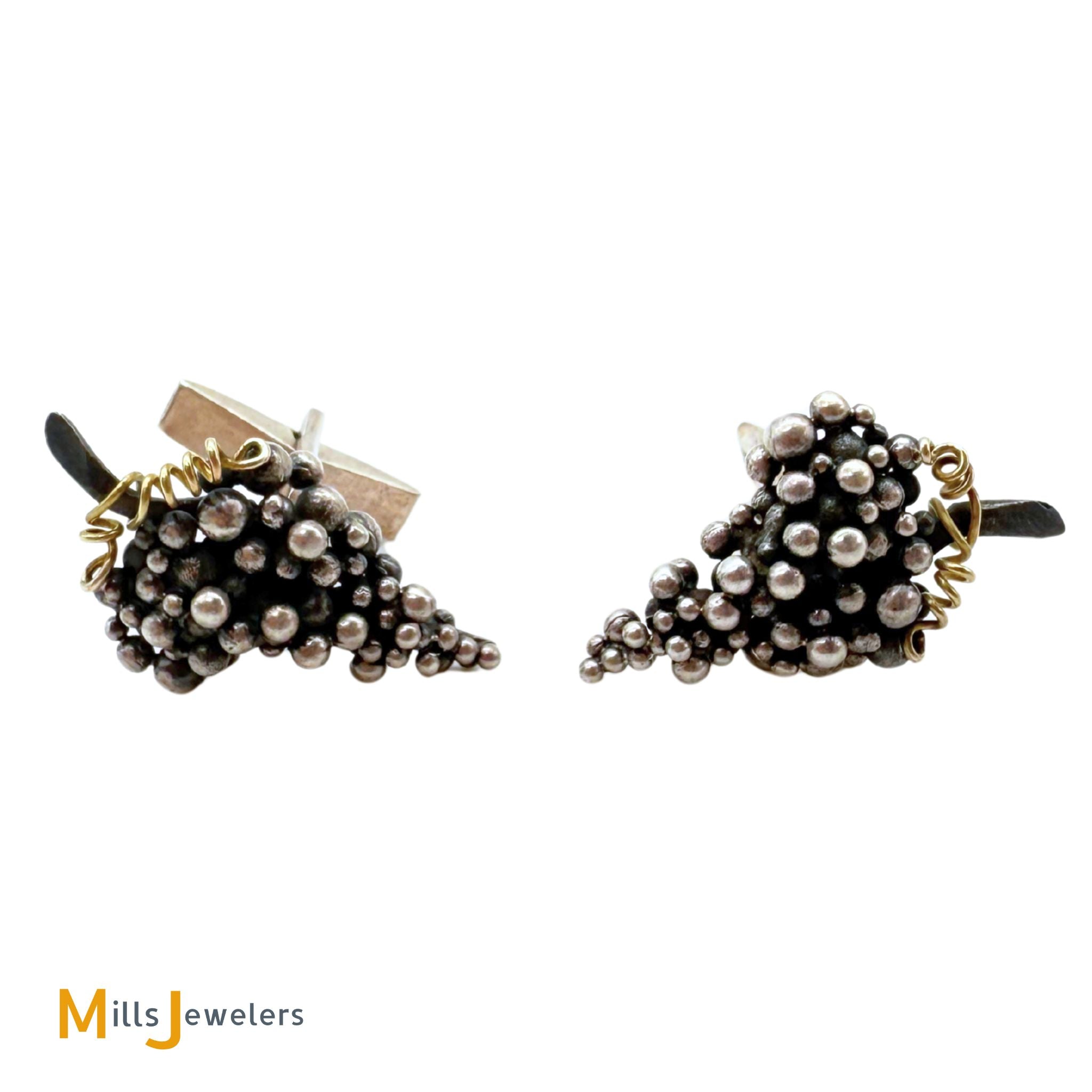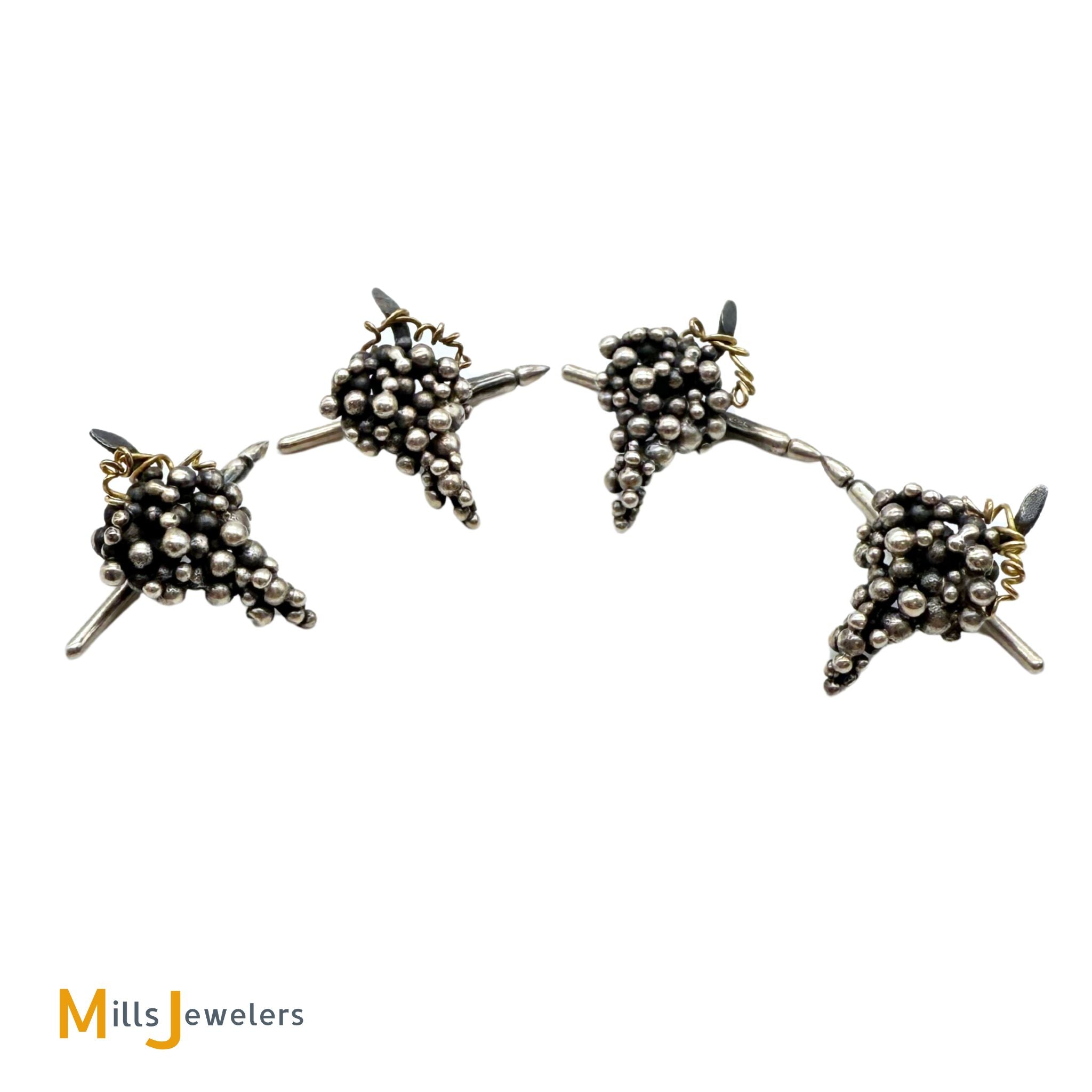 Vintage Sterling Silver 925 Grapevine Cufflink and Button Clip Set